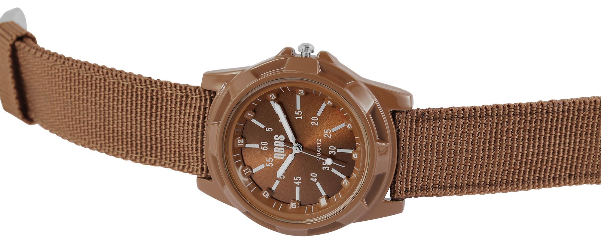 Productinformatie "QBOS Herrenuhr mit Textilarmband, braun"