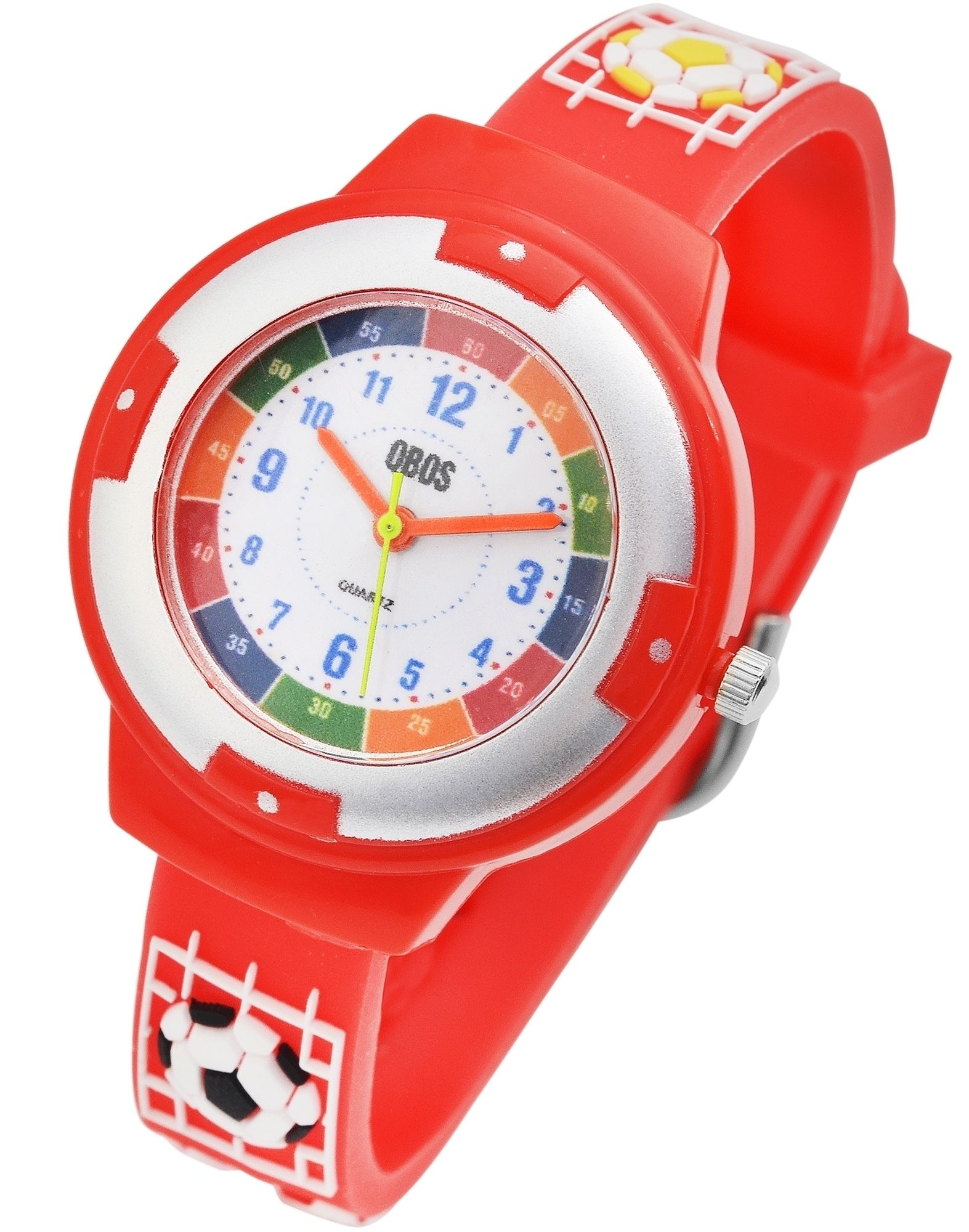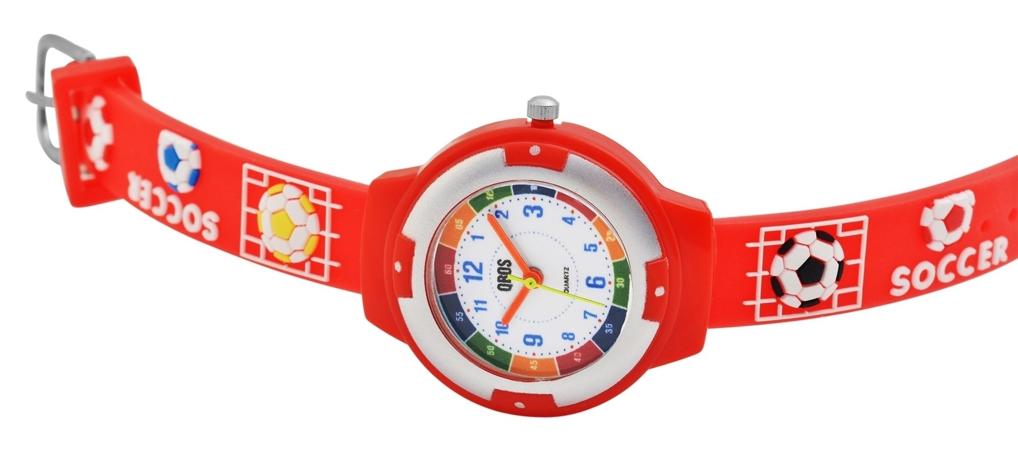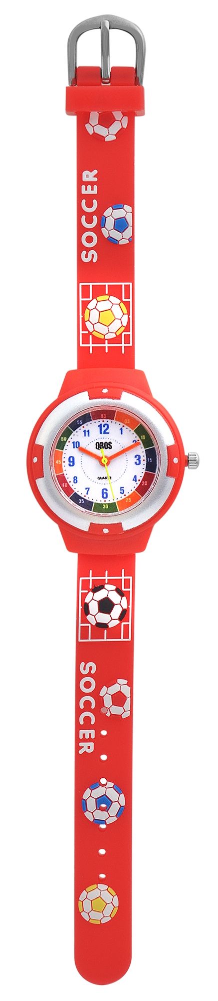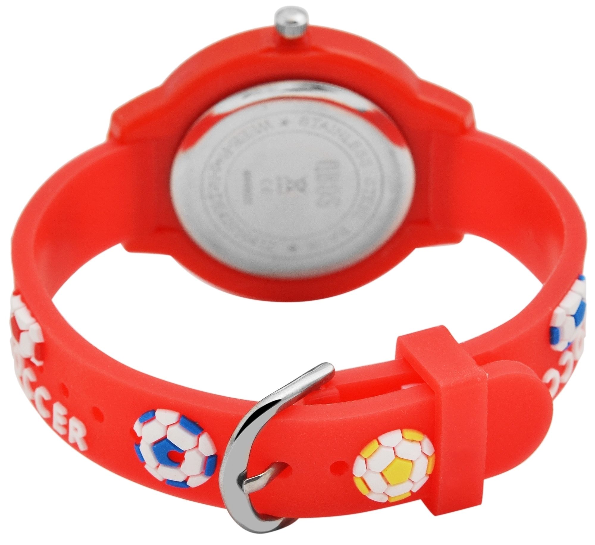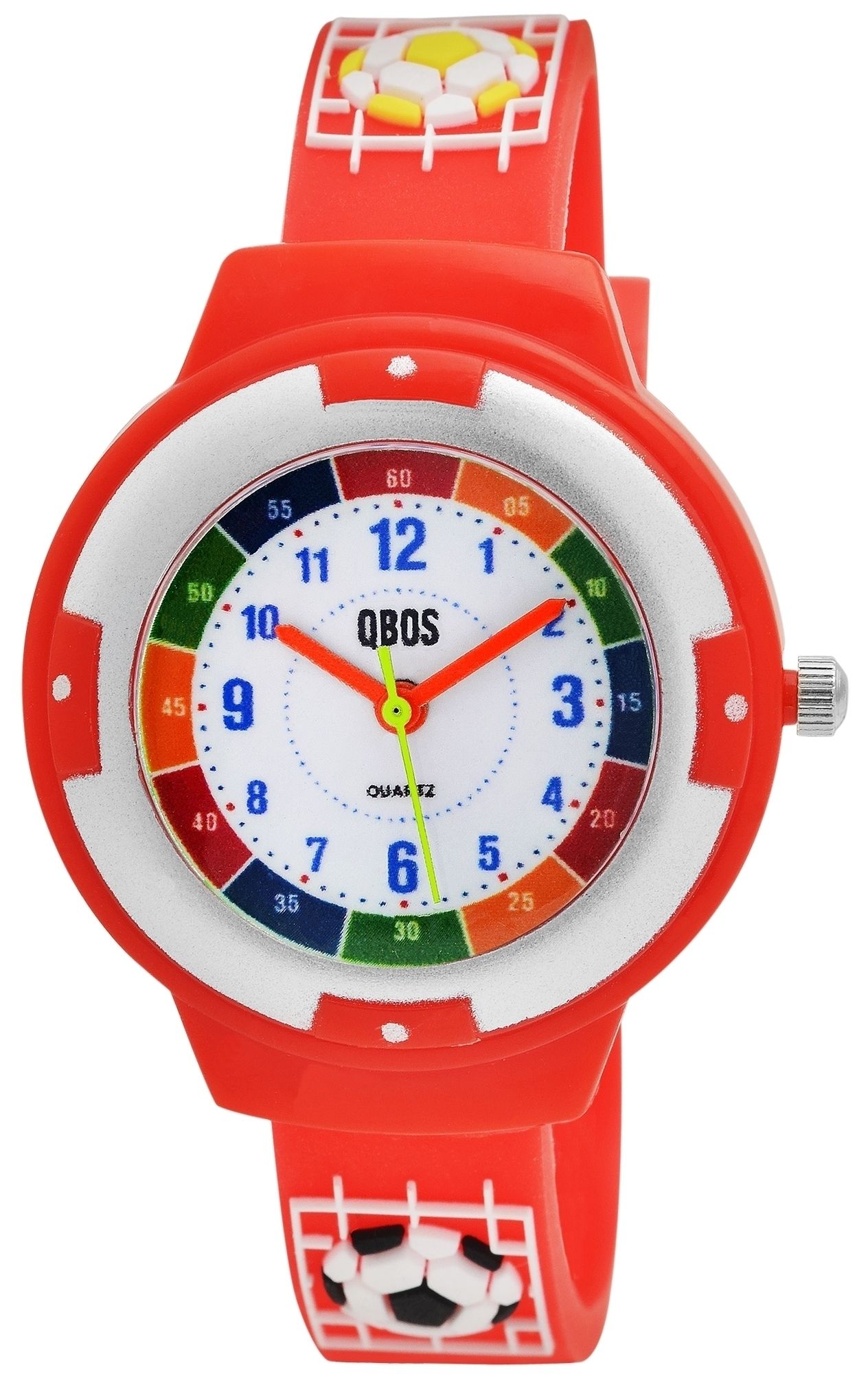 QBOS Kinderuhr mit Silikonarmband, Fußball, Rot