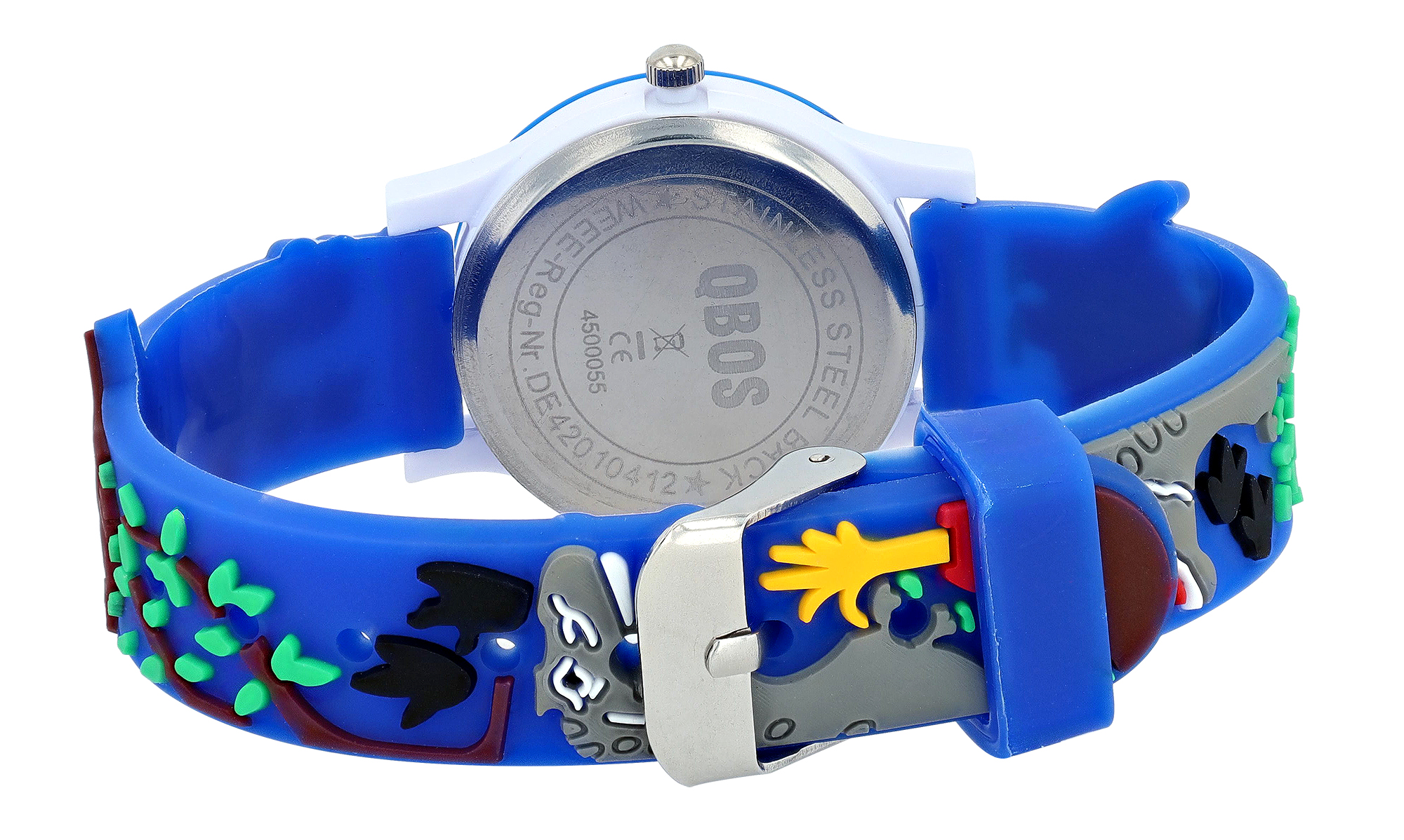 Productinformatie "QBOS Kinderuhr mit Silikonarmband, Motiv Dino, Ø 29 mm, blau"