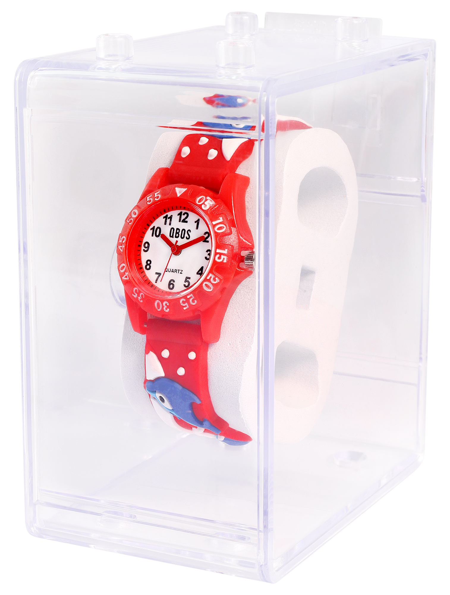 QBOS Kinderuhr mit Silikonband, Delfin, rot, Ø 28 mm inkl. Box