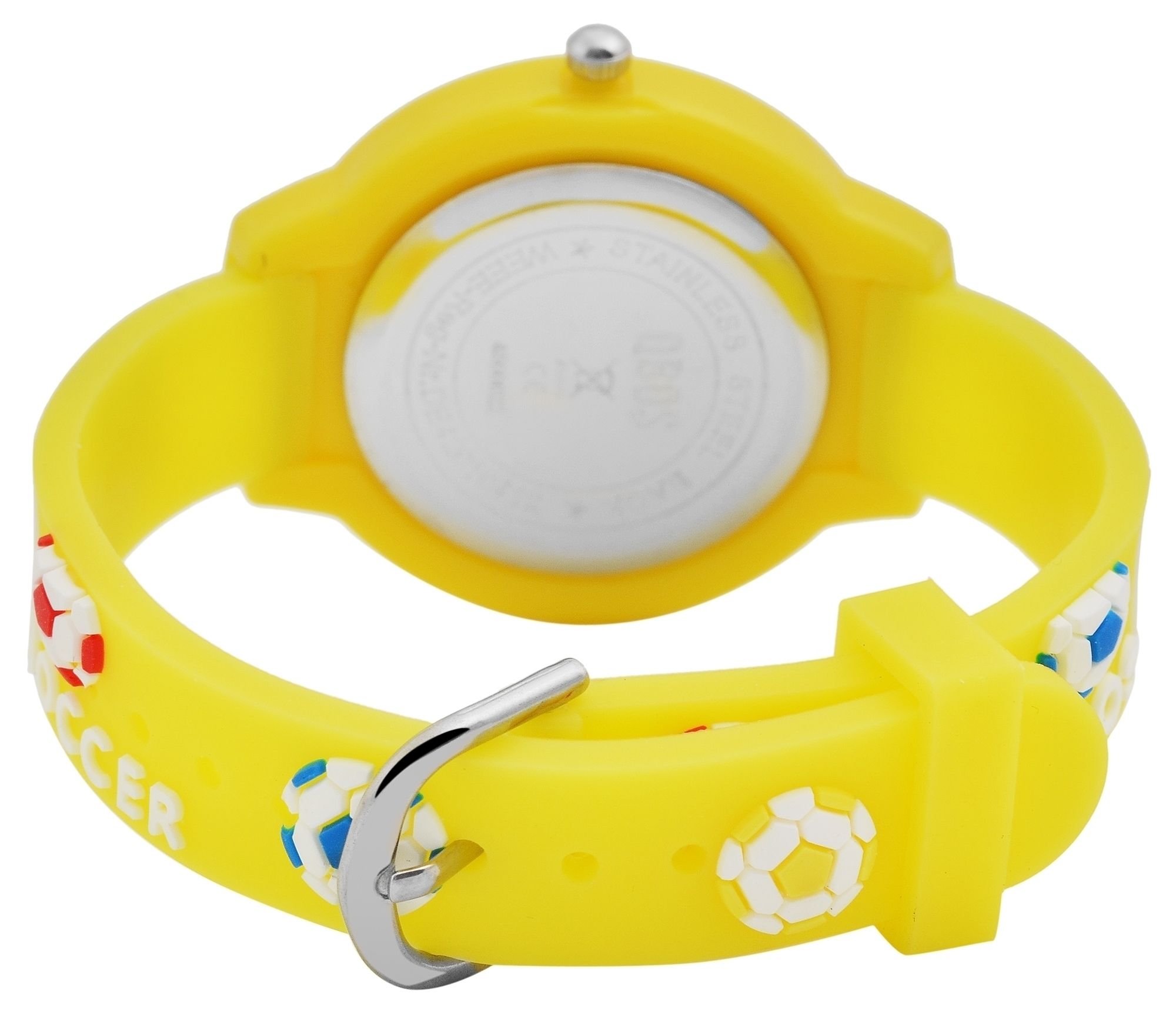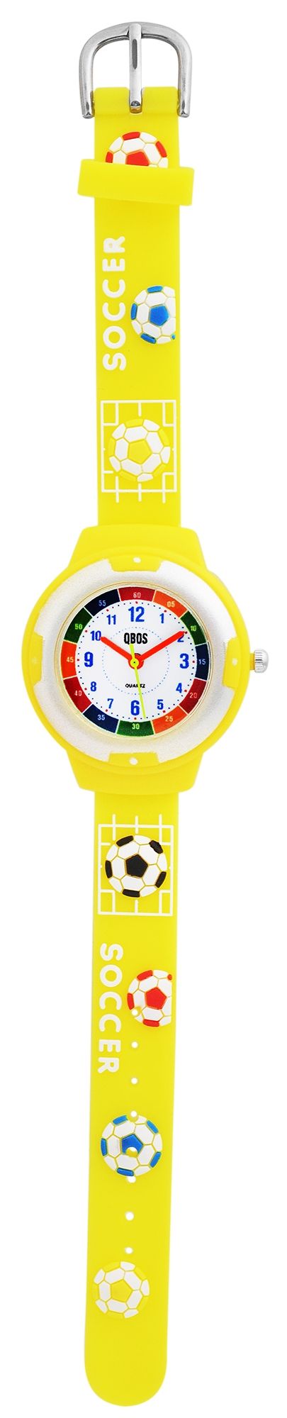 Productinformatie "QBOS kinderhorloge met siliconen band, voetbal, geel"