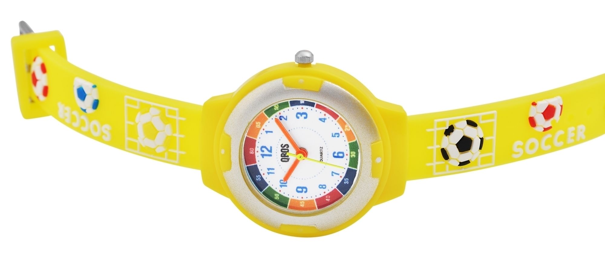 QBOS kinderhorloge met siliconen band, voetbal, geel