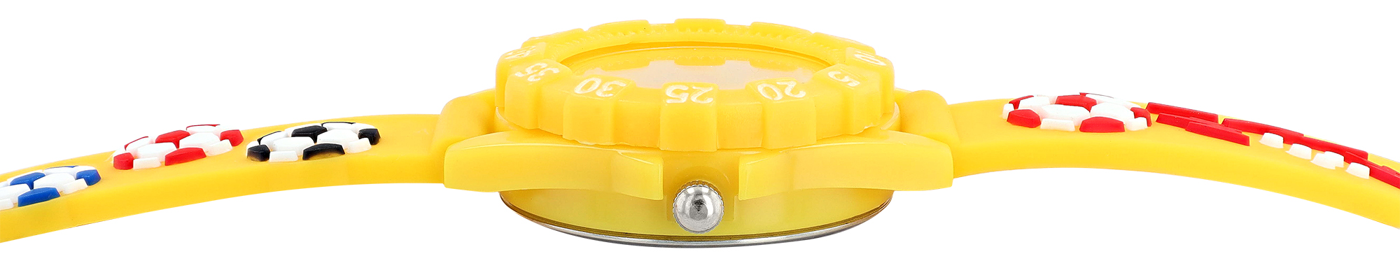 De vrolijke vrijetijdslook wordt benadrukt door een dynamisch voetbalmotief op de band. De ronde kast van 28 mm met een hoogte van 9 mm heeft een lunette met duidelijke cijfers van 5 tot 55, waardoor je samen met de analoge wijzerplaat en de grote Arabische cijfers gemakkelijk de tijd kunt aflezen. Met een totale lengte van 19 cm en een bandbreedte van 14 mm is dit lichtgewicht en duurzame horloge de ideale partner voor actieve kinderen.
