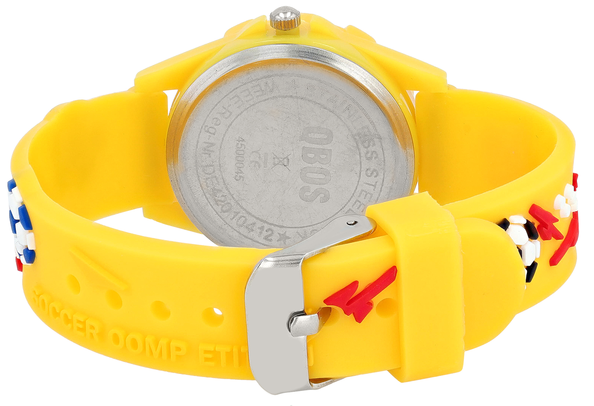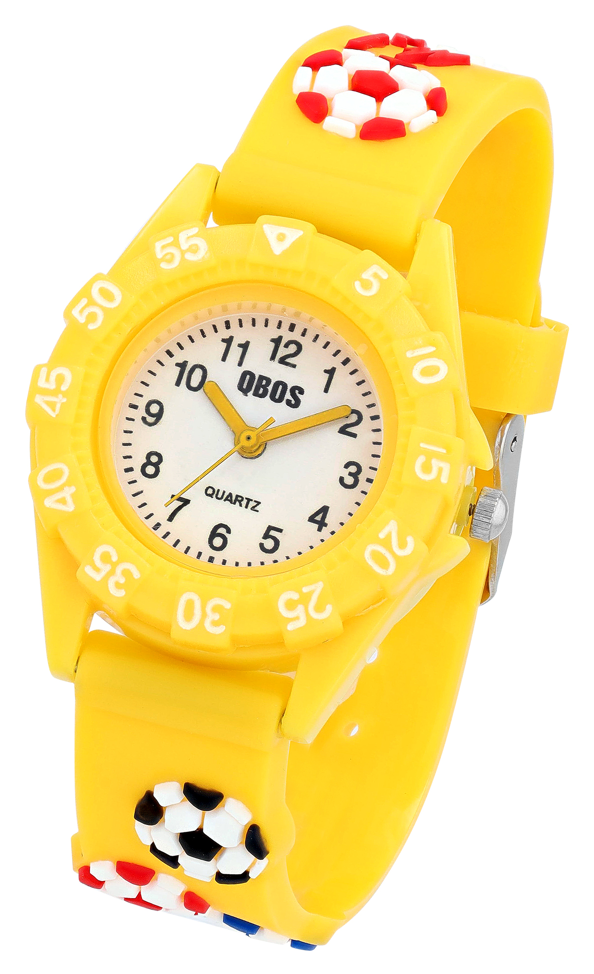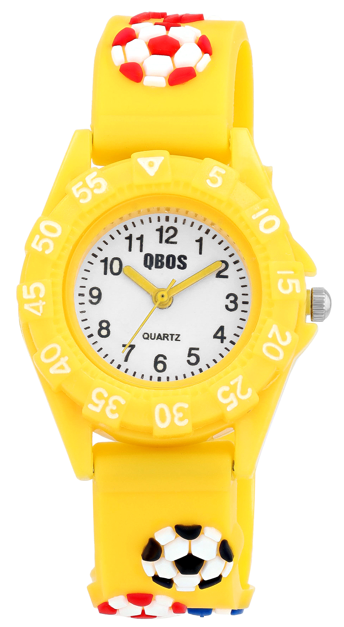 Qbos Kinderuhr mit Silikonband, Motiv Fußball, Ø 28 mm, gelb