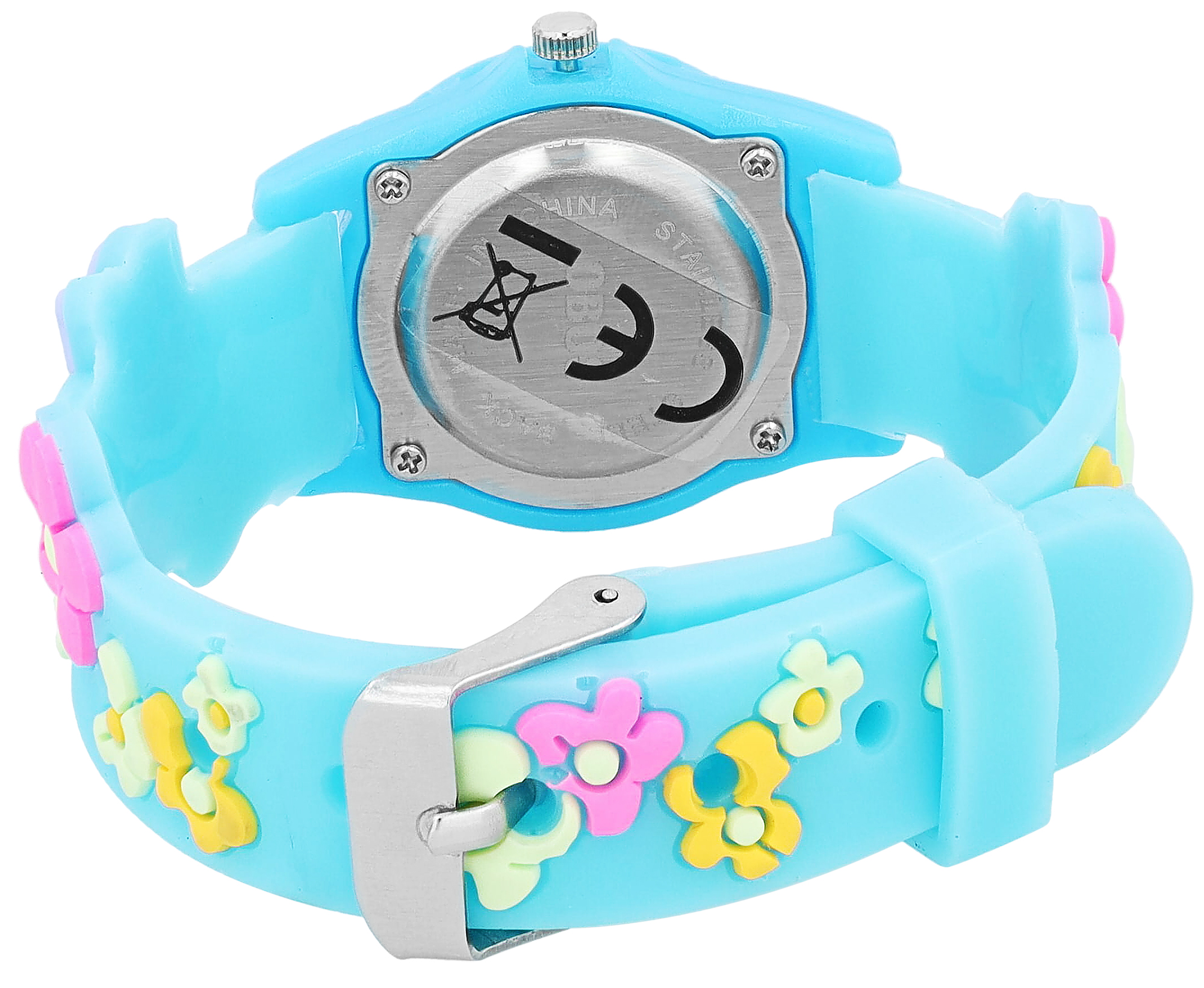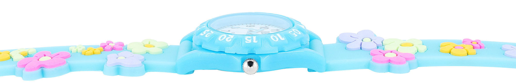 De soepele siliconen band in lichtroze, lichtblauw of rood met vrolijk bloemmotief is niet alleen een echte blikvanger, maar biedt ook maximaal draagcomfort voor tere kinderhandjes. De stevige kunststof kast beschermt op betrouwbare wijze het precieze kwartsuurwerk binnenin. Kleine krasjes? Geen probleem dankzij het krasbestendige mineraalglas. De roestvrijstalen achterkant van het horloge zorgt ook voor een lange levensduur.