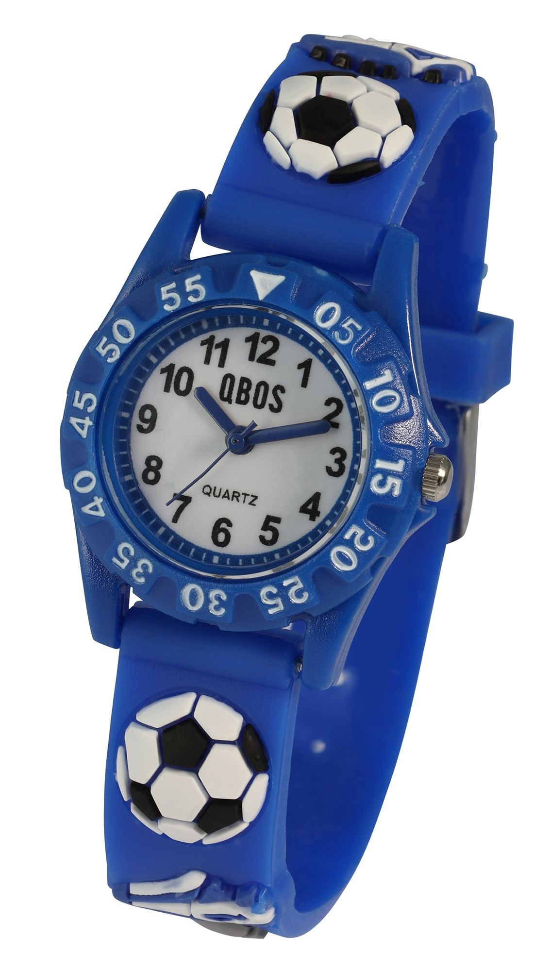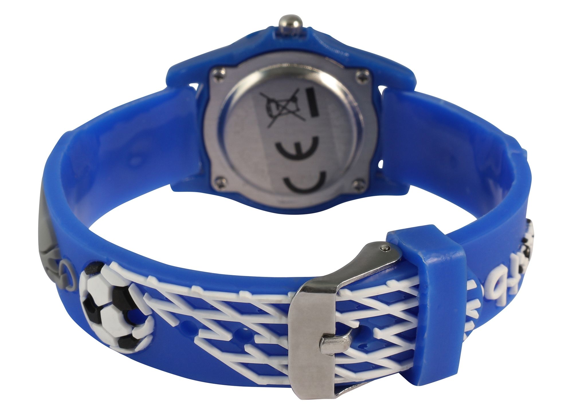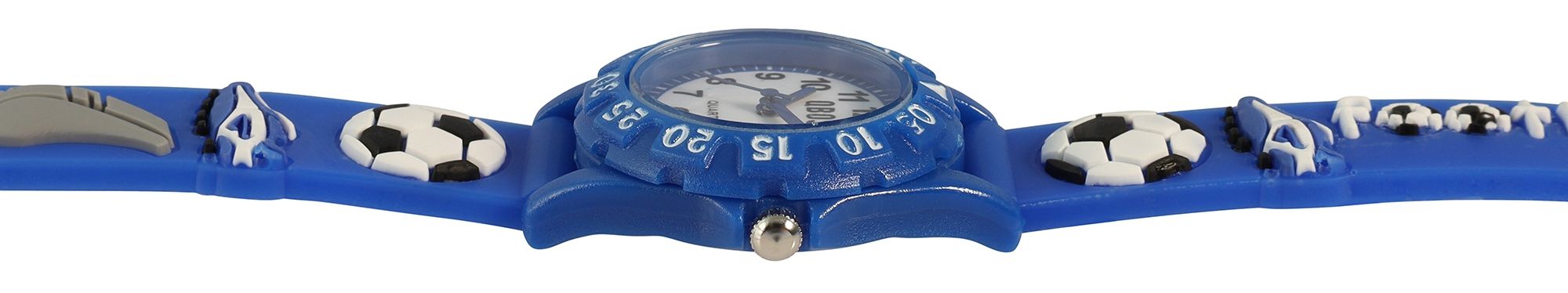 De vrolijke vrijetijdslook wordt benadrukt door een dynamisch voetbalmotief op de band. De ronde kast van 28 mm met een hoogte van 9 mm heeft een lunette met duidelijke cijfers van 5 tot 55, waardoor je samen met de analoge wijzerplaat en de grote Arabische cijfers gemakkelijk de tijd kunt aflezen. Met een totale lengte van 19 cm en een bandbreedte van 14 mm is dit lichtgewicht en duurzame horloge de ideale partner voor actieve kinderen.