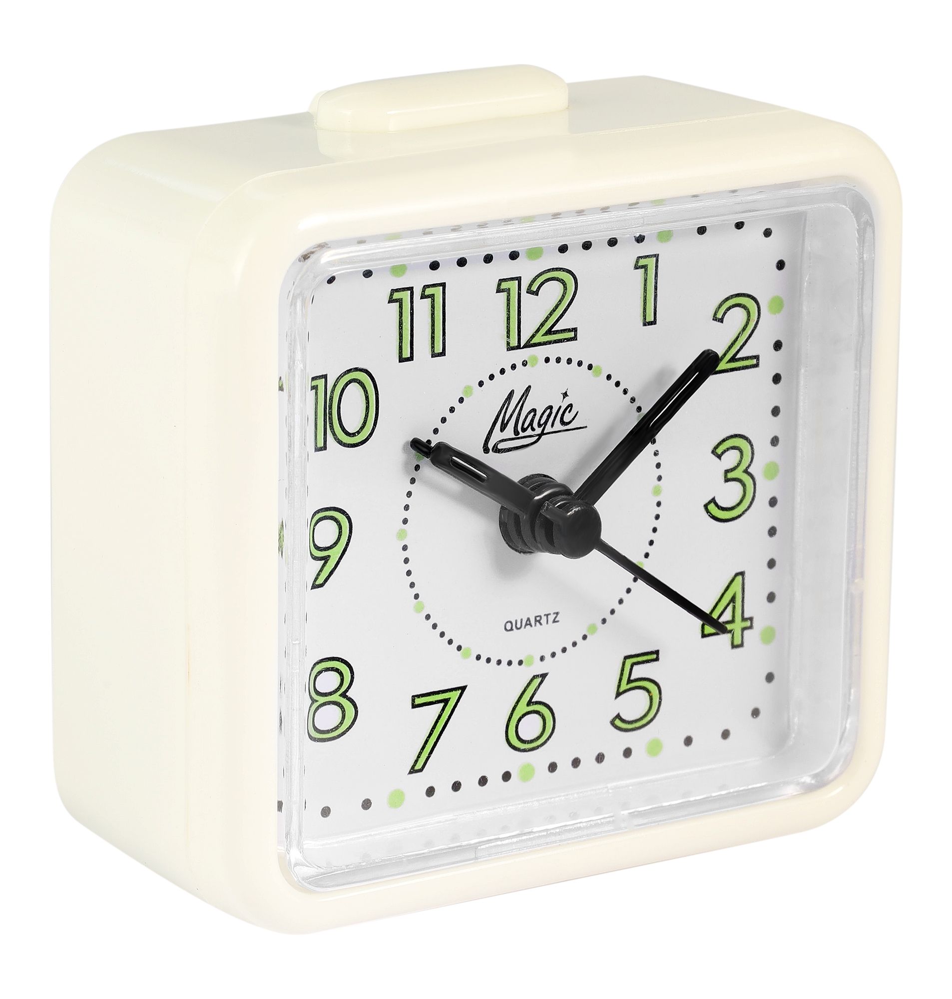 Productinformatie "Quartzwecker mit Obenabsteller, weiß"