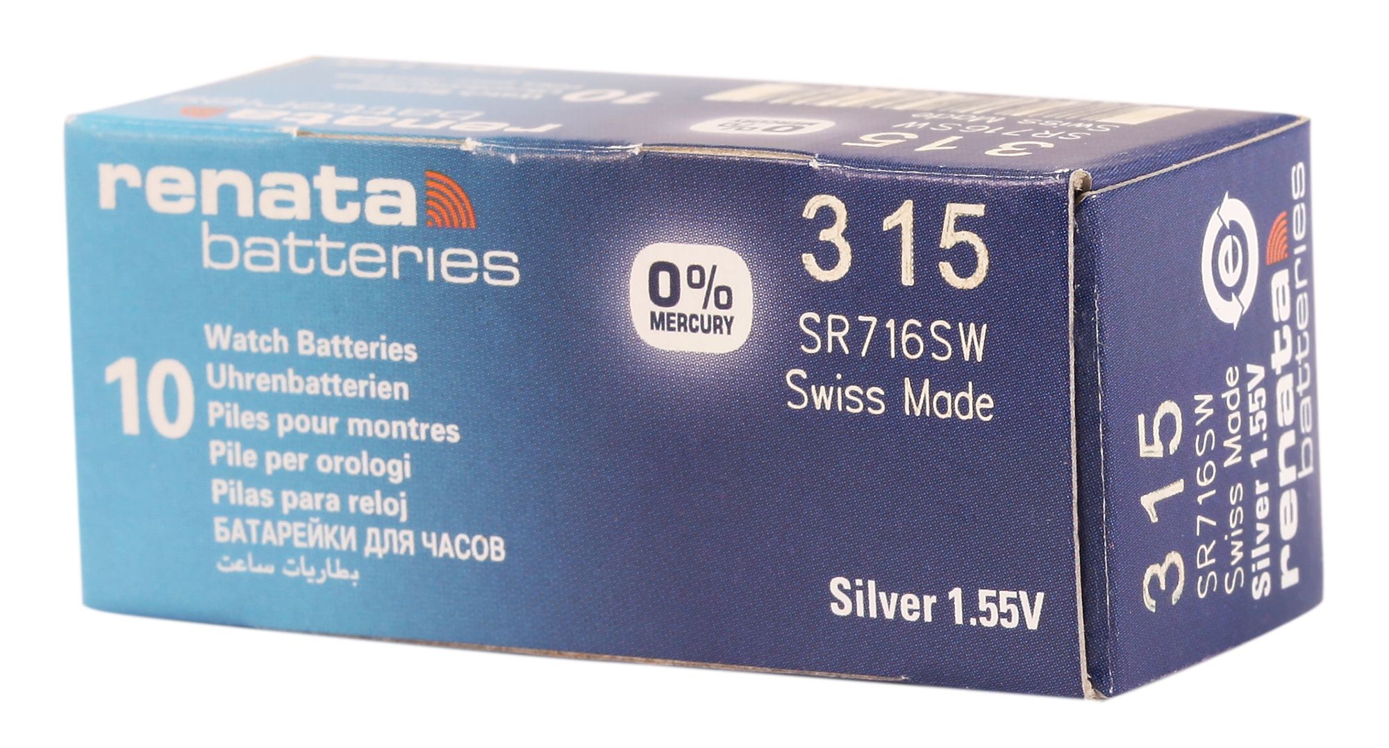 Renata zilveroxide knoopcel omvat meer dan 40 verschillende typen knoopcellen met een hoge capaciteit, lekveiligheid en absolute spanningsstabiliteit bij 0% kwik, geschikt voor elk elektronisch apparaat dat een zeer compacte, duurzame, laagspanningsbron nodig heeft. Toepassingen: Horloges, rekenmachines, speelgoed, afstandsbedieningen of zaklampen etc. Grootte/vorm: R315 / SR7416SW