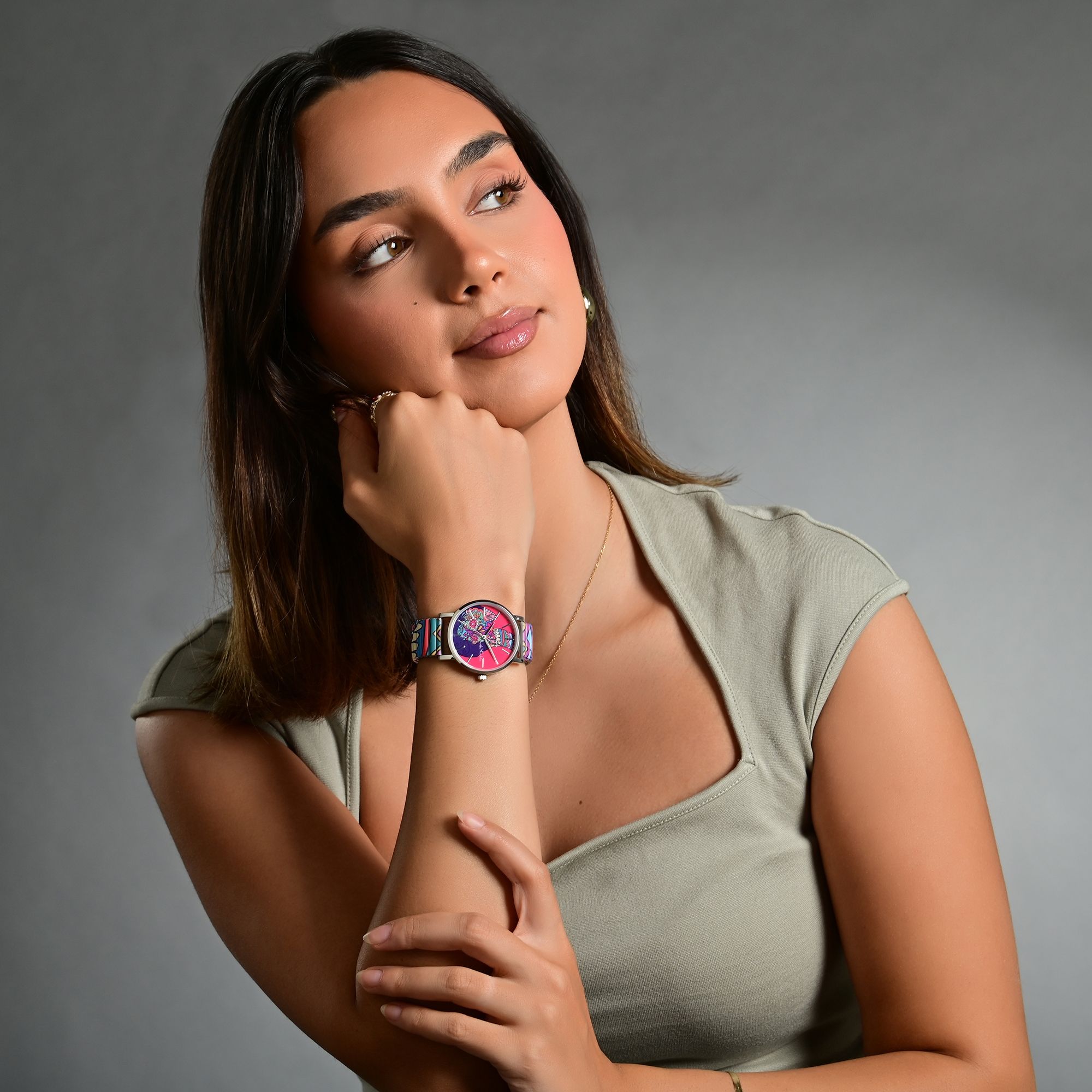 Het "Raptor X Frida Kahlo" horloge met trekband toont de iconische kunst en persoonlijkheid van de Mexicaanse schilderes op een unieke manier. Dit horloge is een eerbetoon aan Frida Kahlo's levendige kleuren, haar expressieve zelfportretten en de karakteristieke aard van haar werken.