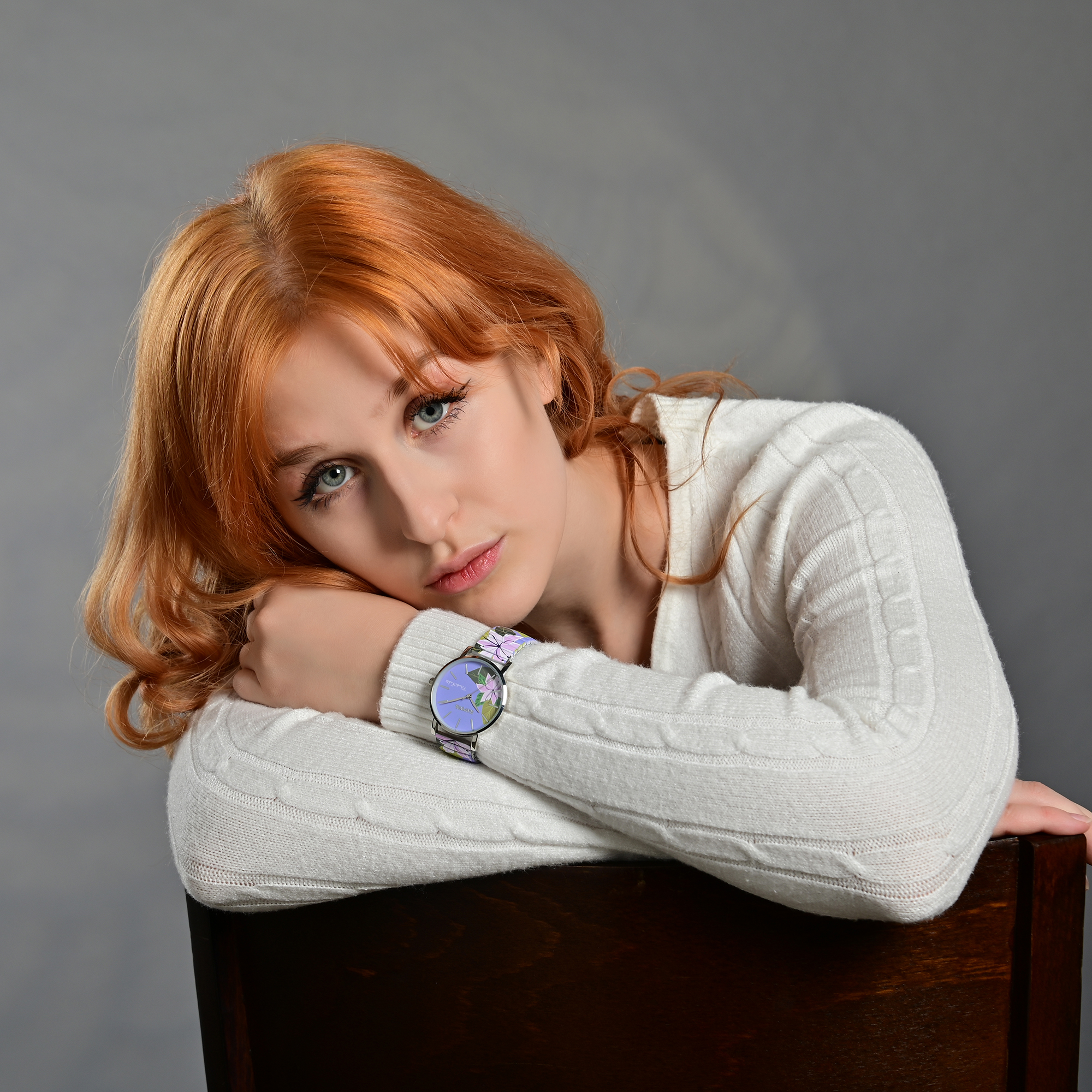 De wijzerplaat met lijnindices presenteert zich als een canvas waarop de motieven van Frida Kahlo zich ontvouwen. De kleuren omvatten levendige nuances zoals blauw, rood, groen en geel, die perfect zijn gerangschikt. Er zijn verwijzingen naar de beroemde schilderijen van Frida Kahlo in deze pracht. De artistieke details geven het horloge met 3 wijzers een onmiskenbare artistieke identiteit en maken het een geweldige blikvanger.
