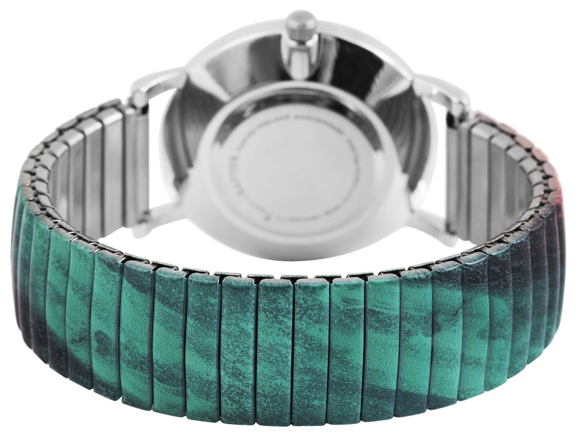 Het analoge dameshorloge met 3 wijzers en trekband heeft een hoogwaardig kwartsuurwerk. De roestvrijstalen trekband, versierd met verschillende rood-, blauw- en groentinten, is 18 mm breed bij de lug en is bijzonder gemakkelijk over de pols te trekken dankzij de flexibele band. Het horloge is ook zeer comfortabel om te dragen dankzij de lichtheid en flexibiliteit. De totale lengte van het horloge is 18,5 cm. De lengte van de armband kan worden aangepast aan elke pols. De zilverkleurige metalen kast met mineraalglas heeft een diameter van 36 mm en een kasthoogte van 8 mm. De achterkant van de kast is gemaakt van roestvrij staal. Elk horloge met trekband is een visueel hoogtepunt. Het kleurrijke patroon van de band in rode, blauwe en groene tinten komt terug in de wijzerplaat en maakt het horloge tot een allround blikvanger. De wijzers en indexen zijn ook zilverkleurig en passen goed bij de algehele look van het horloge. Met een keuze uit 17 verschillende patronen en drie verschillende kastkleuren is er zeker iets voor elke smaak. Al met al is het een onmisbaar sieraad dat om geen enkele pols mag ontbreken.