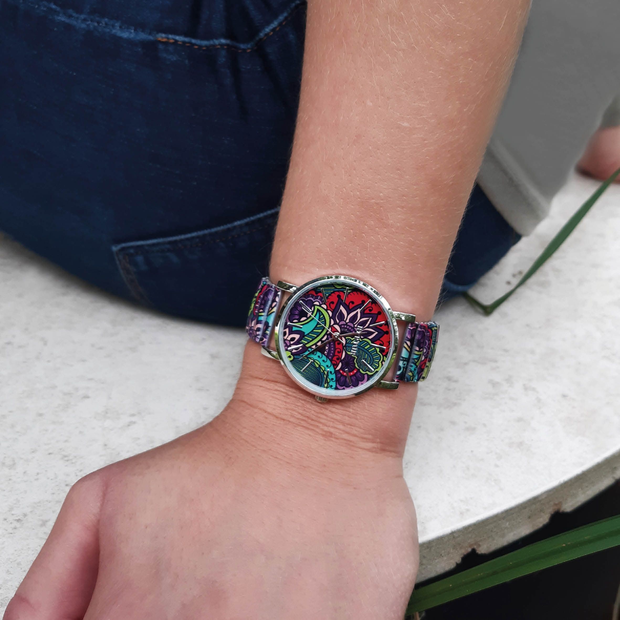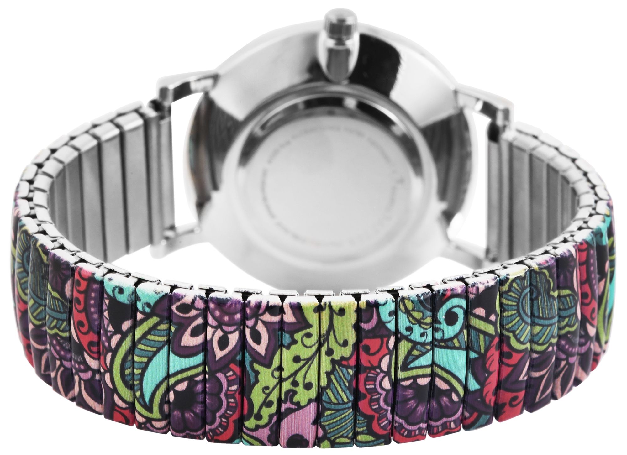 Het analoge 3-hands dameshorloge met trekband heeft een hoogwaardig quartz uurwerk. De roestvrijstalen trekband is 18 mm breed bij de lug en is bijzonder gemakkelijk over de pols te trekken dankzij de flexibele band. Het horloge is ook zeer comfortabel om te dragen dankzij de lichtheid en flexibiliteit. De totale lengte van het horloge is 18,5 cm. De lengte van de armband kan worden aangepast aan elke pols. De metalen kast met mineraalglas heeft een diameter van 36 mm en een kasthoogte van 8 mm. De achterkant van de kast is gemaakt van roestvrij staal. Elk horloge met trekband is een visueel hoogtepunt. Het kleurrijke patroon van de band komt terug in de wijzerplaat en maakt het horloge tot een allround blikvanger. De wijzers en indexen zijn monochroom en passen goed bij de algehele look van het horloge. Met een keuze uit 17 verschillende patronen en drie verschillende kastkleuren is er zeker iets voor elke smaak. Al met al is het een onmisbaar sieraad dat om geen enkele pols mag ontbreken.