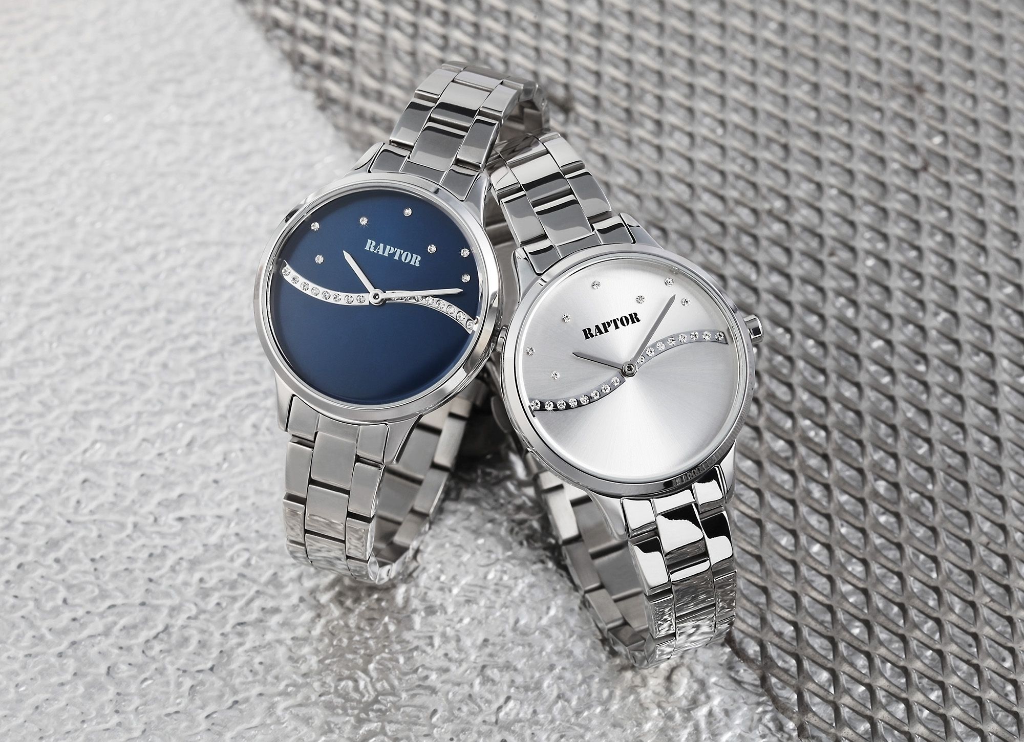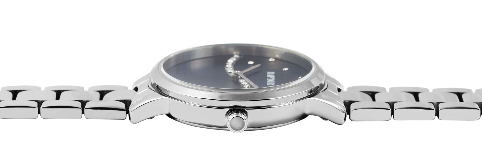 Productinformatie "Raptor Damenuhr "Flake" mit Edelstahlband, silberfarben/blau"
