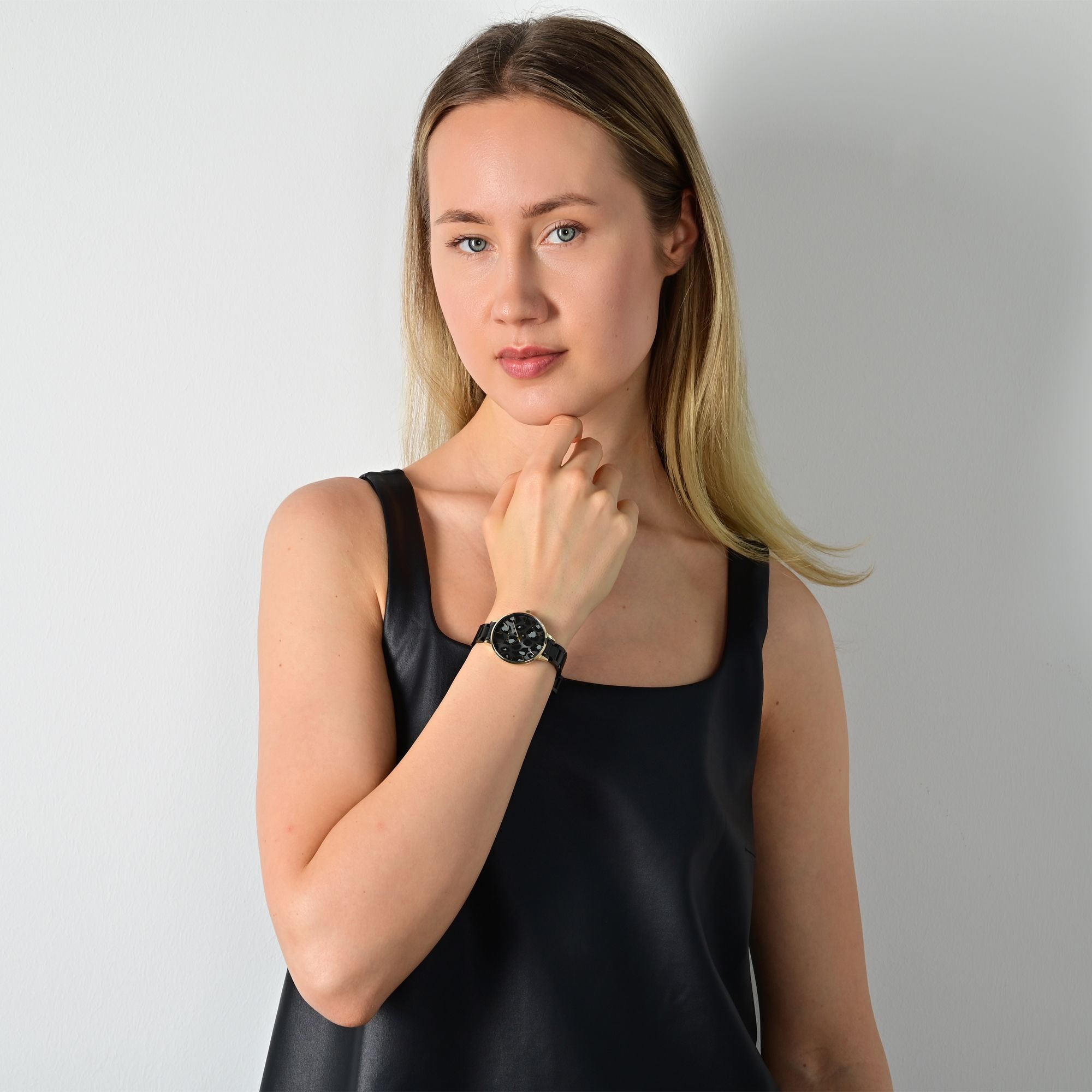 Het analoge 3-hands damespolshorloge van het merk Raptor heeft een hoogwaardig quartz uurwerk. De zwarte roestvrijstalen armband is 12 mm breed bij de lug en kan worden geopend en gesloten met een roestvrijstalen vouwsluiting. De totale lengte van het horloge is 21 cm. De goudkleurige metalen kast met mineraalglas heeft een diameter van 34 mm en een kasthoogte van 7 mm. De achterkant van de kast is gemaakt van roestvrij staal. De wijzerplaat is het middelpunt van het dameshorloge. Deze is versierd met een prachtig luipaardpatroon en straalt daardoor een modern en fris design uit. Het horloge heeft ook een waterbestendigheid van 3 bar. Je ontvangt een garantiekaart en een originele Raptor doos als accessoires voor je product.