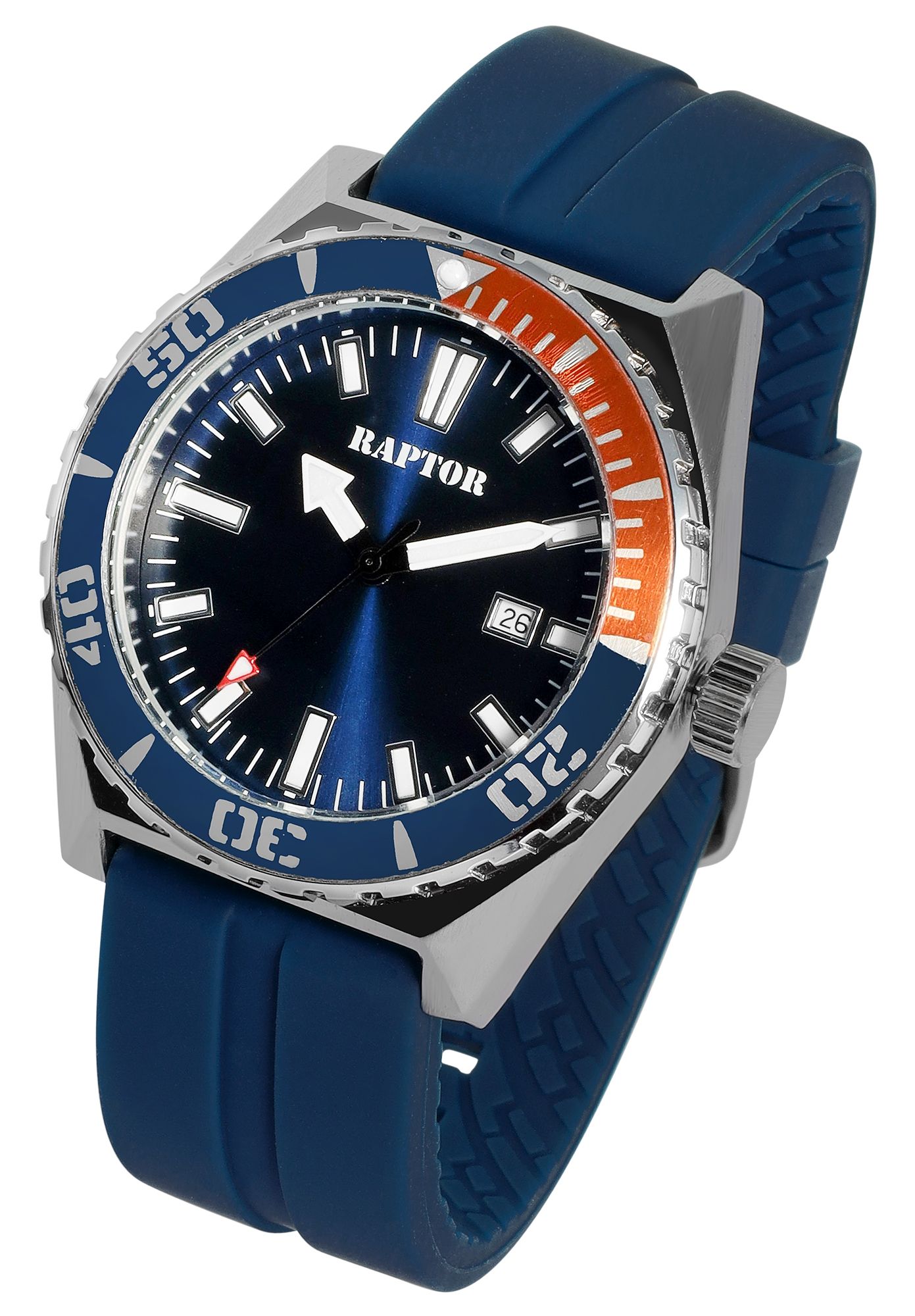 Productinformatie "Raptor Herrenuhr "Jett" mit Silikonarmband, drehbare Lünette, Datumsanzeige, 5 ATM, blau"