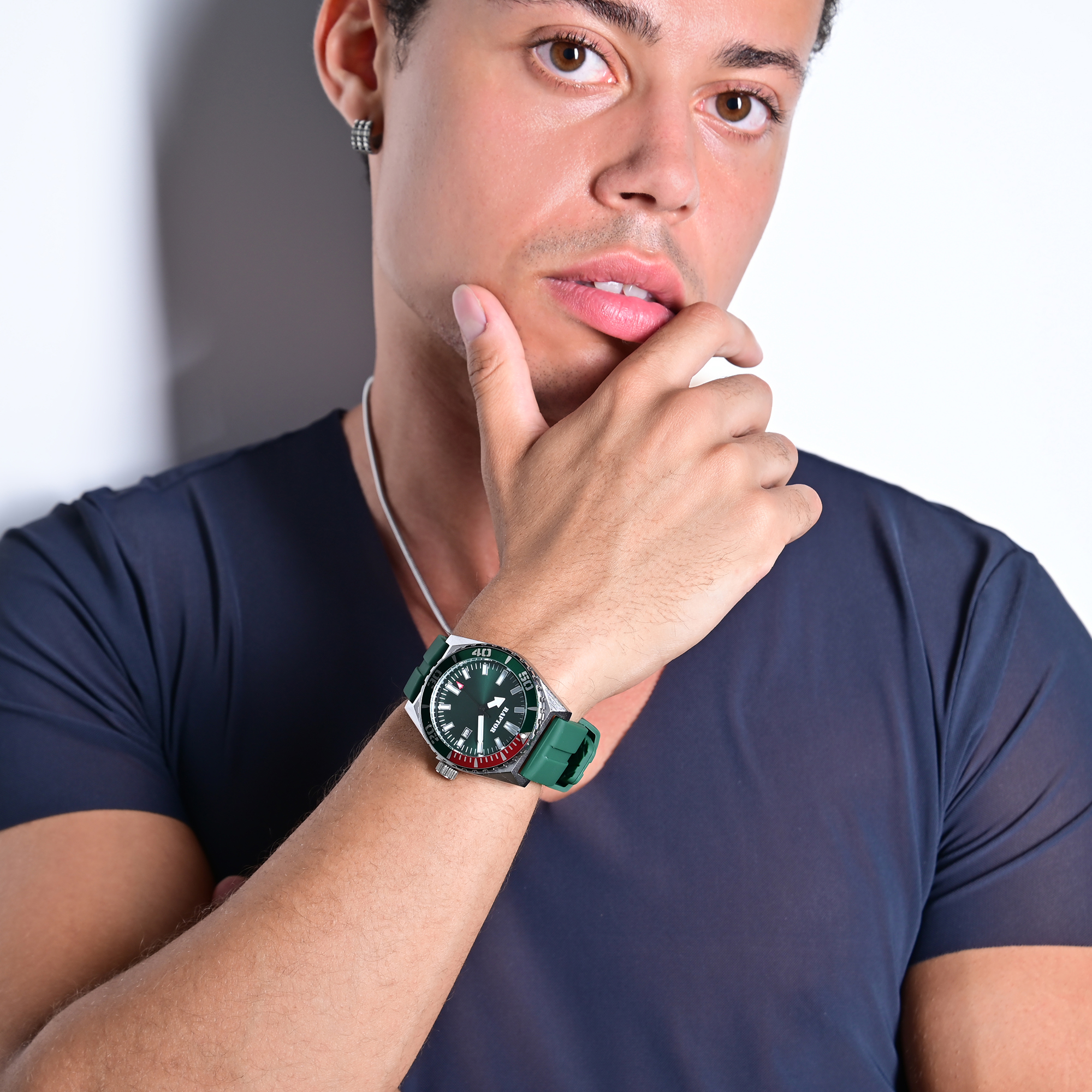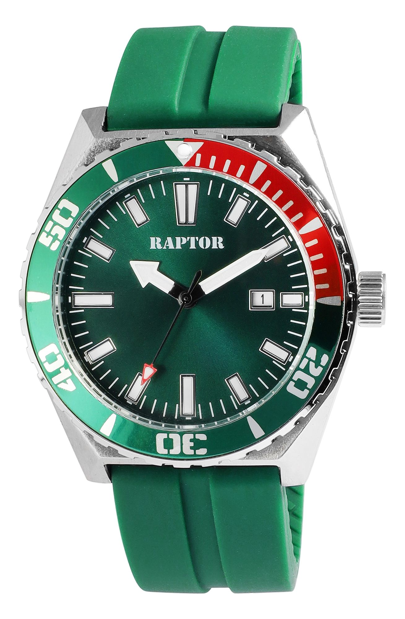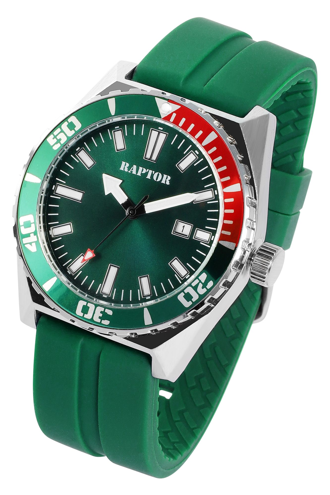 Productinformatie "Raptor Herrenuhr "Jett" mit Silikonarmband, drehbare Lünette, Datumsanzeige, 5 ATM, grün"