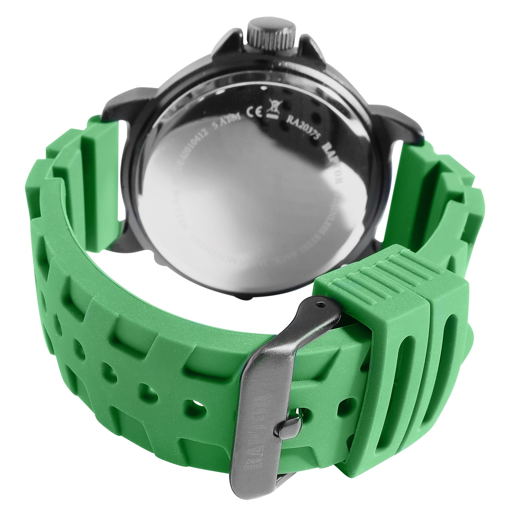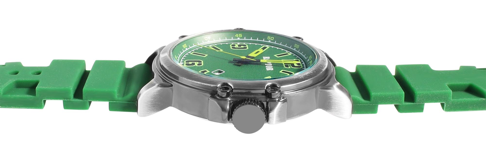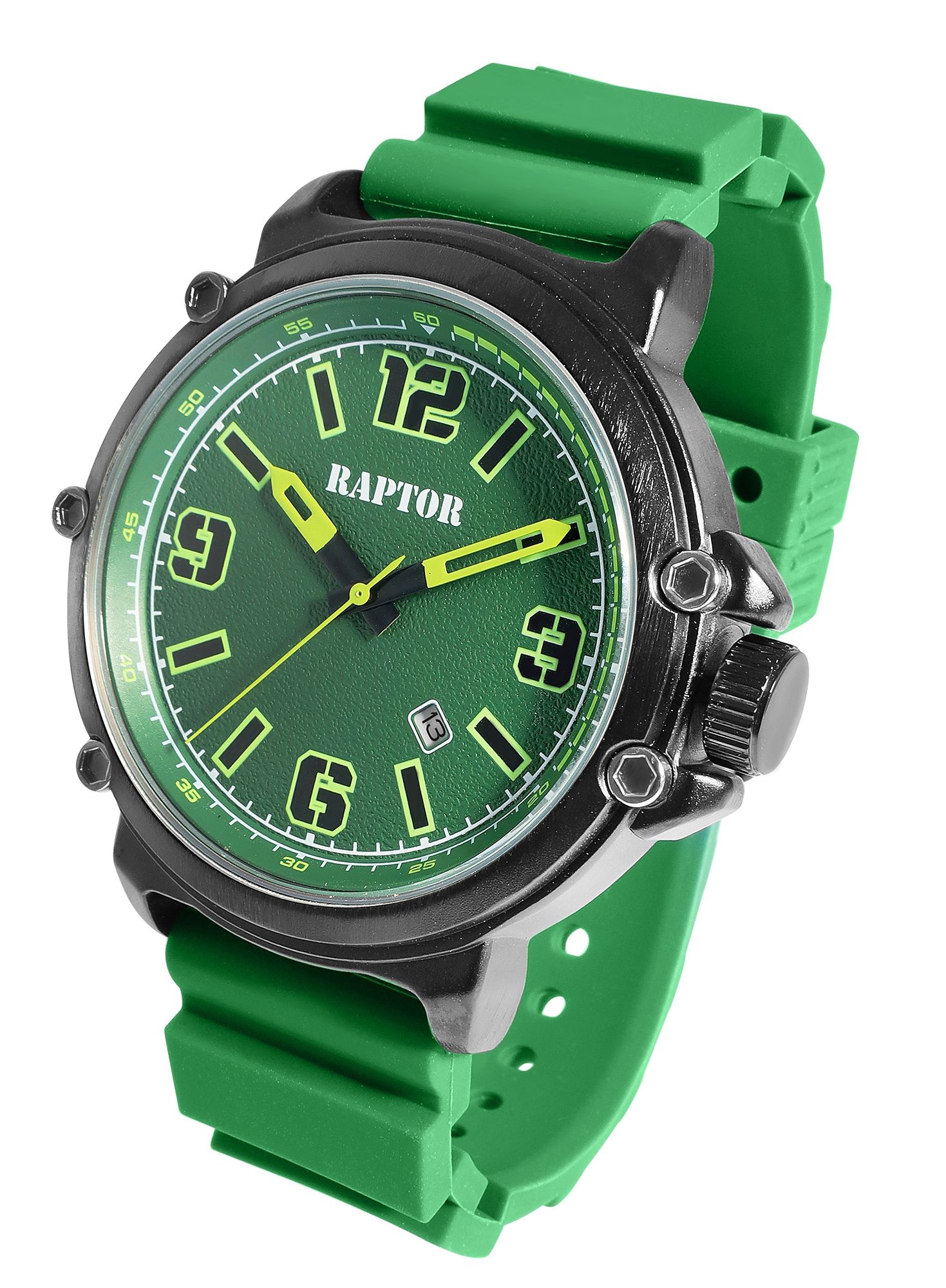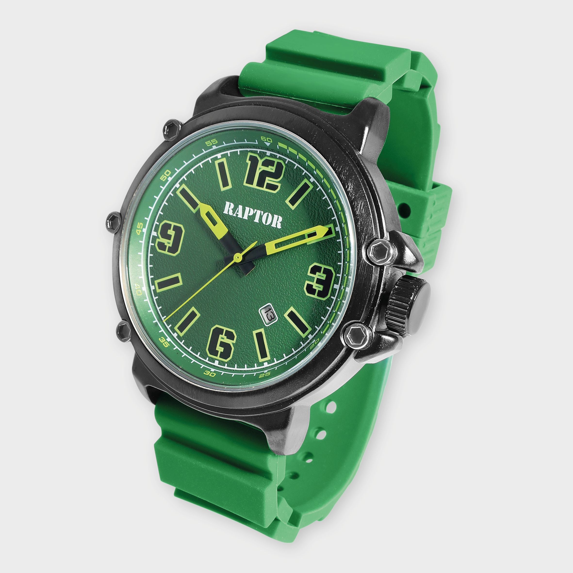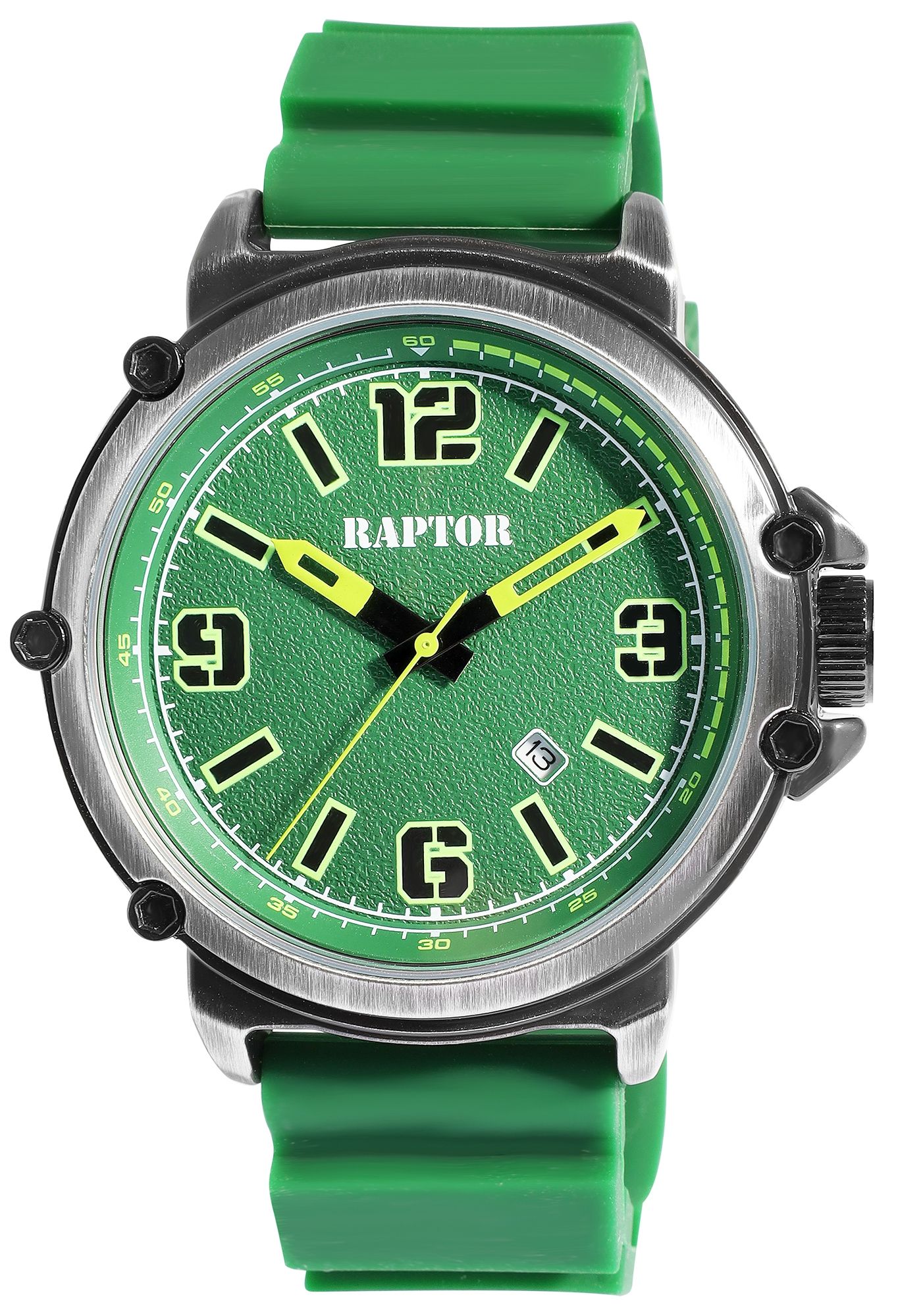 Productinformatie "Raptor Herrenuhr "Xander" mit Silikonarmband, Datumsanzeige, 5 ATM, grün"