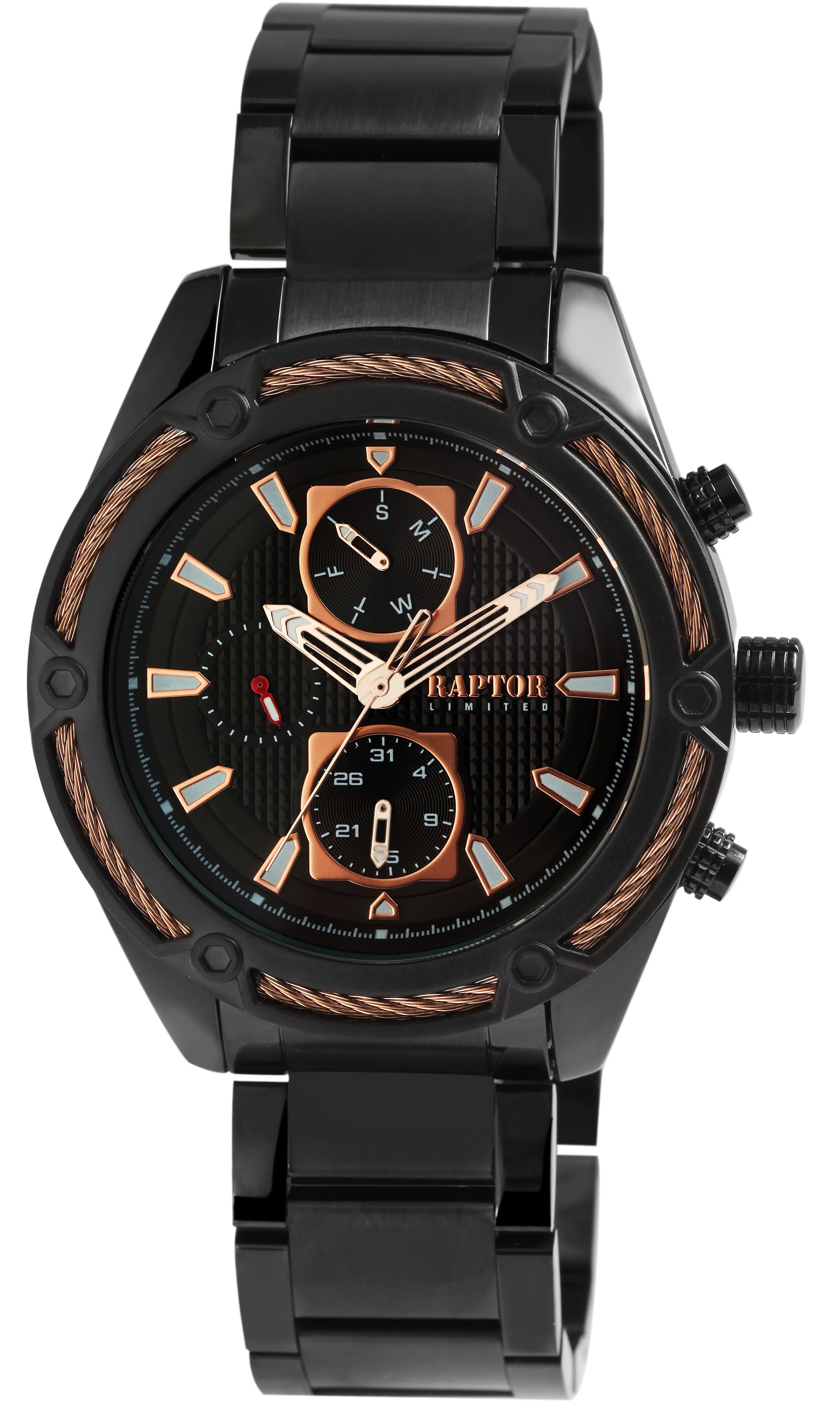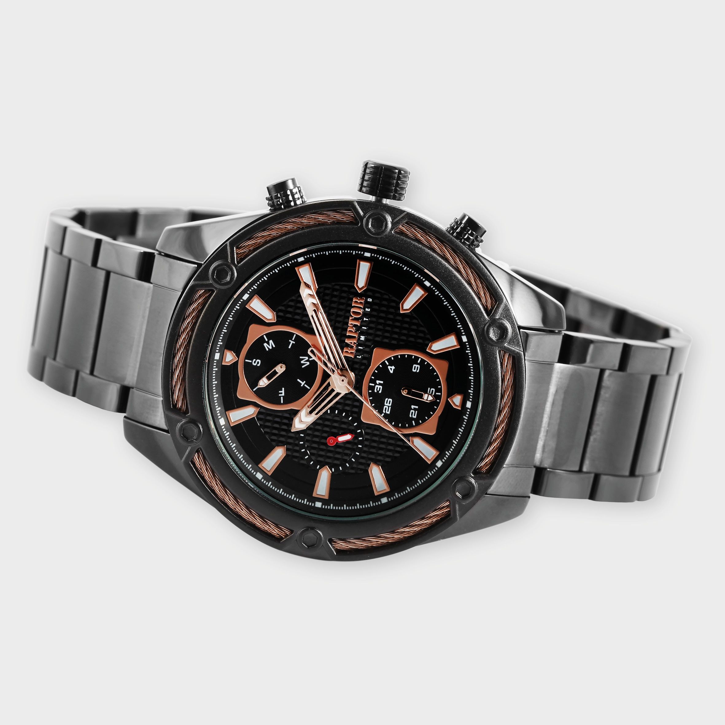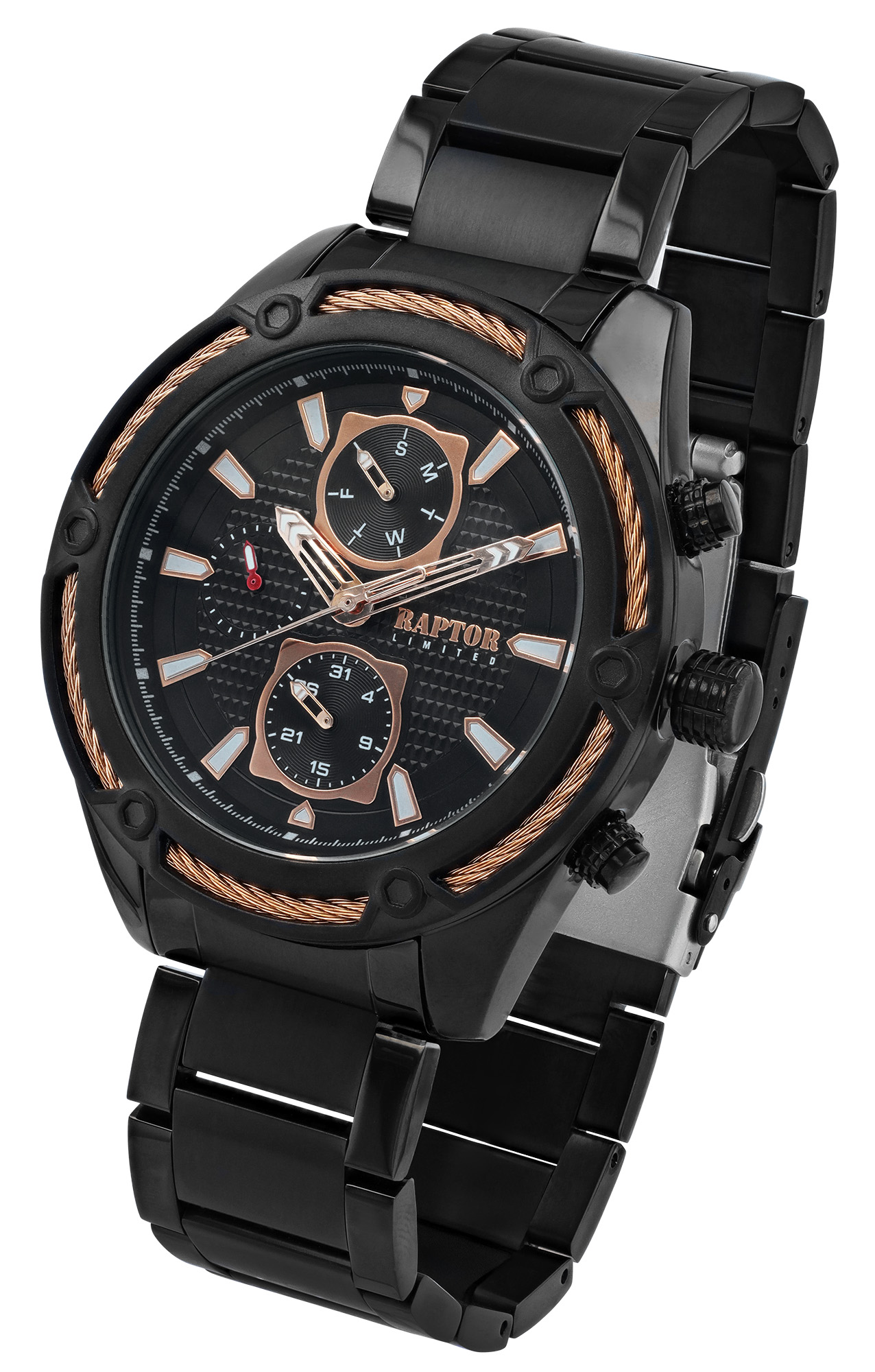 Raptor Limited Herrenuhr "Maher" mit Edelstahlarmband und Multifunktionsanzeige, schwarz/kupferfarben