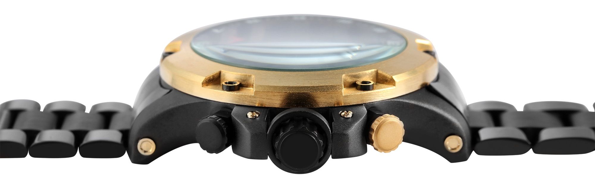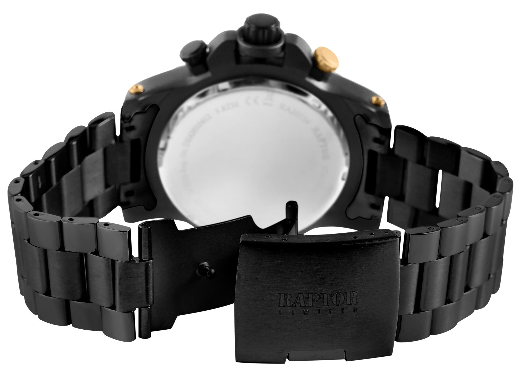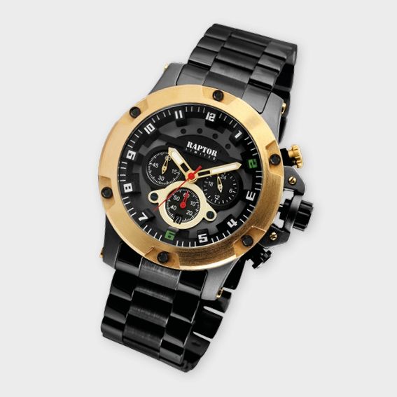 Productinformatie "Raptor Limited herenchronograaf "Soheib" met roestvrijstalen armband, zwart/goudkleurig"