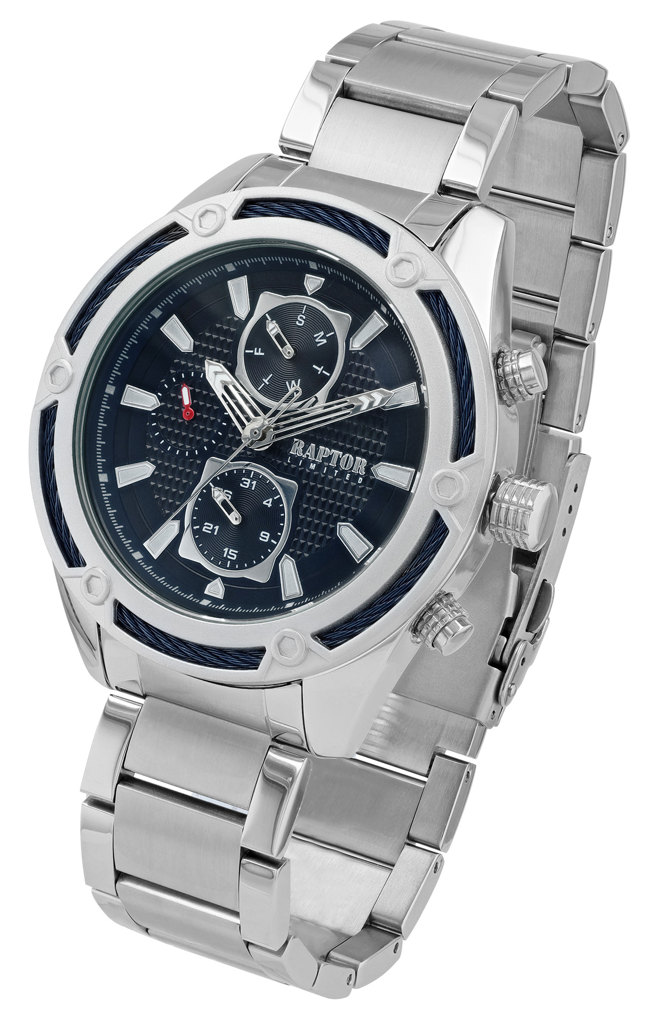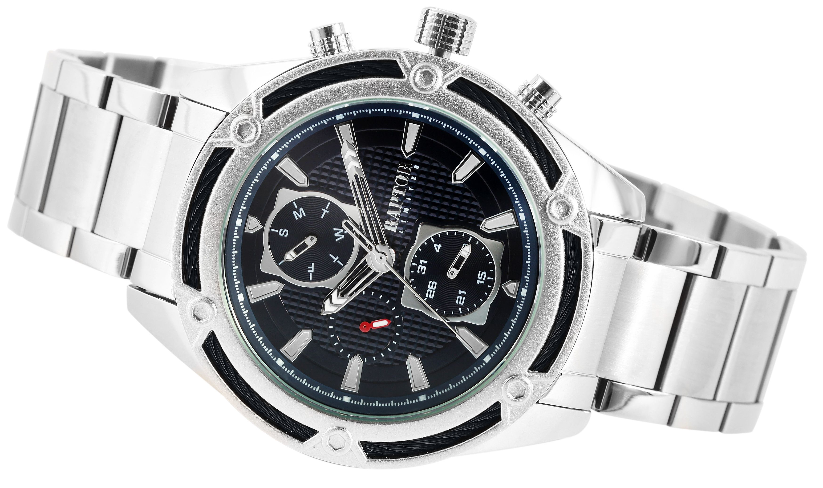 Productinformatie "Raptor Limited herenhorloge "Maher" met roestvrijstalen armband en multifunctionele display, zilverkleurig/zwart"