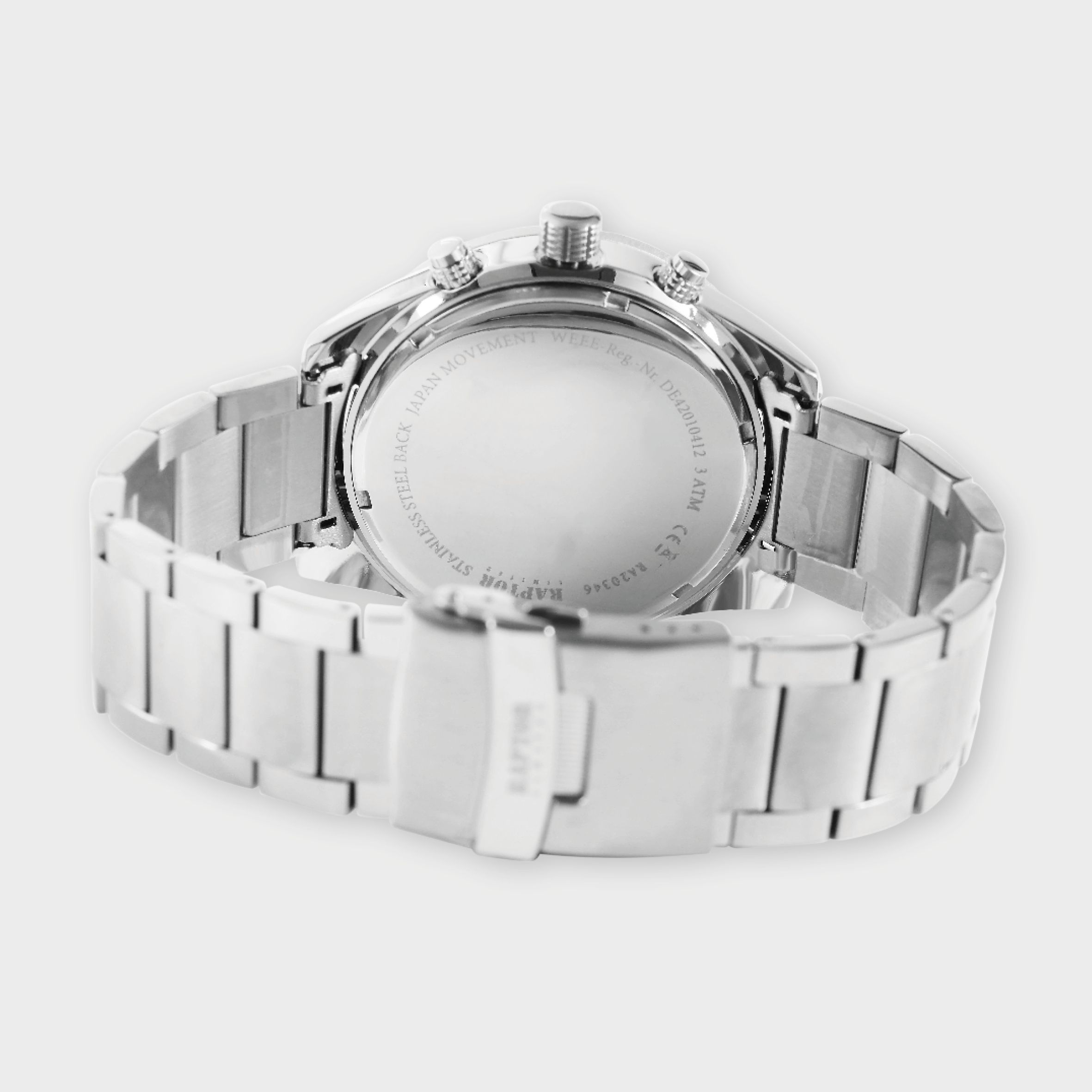 | Gehäusebodenmaterial Uhr: | Edelstahl |