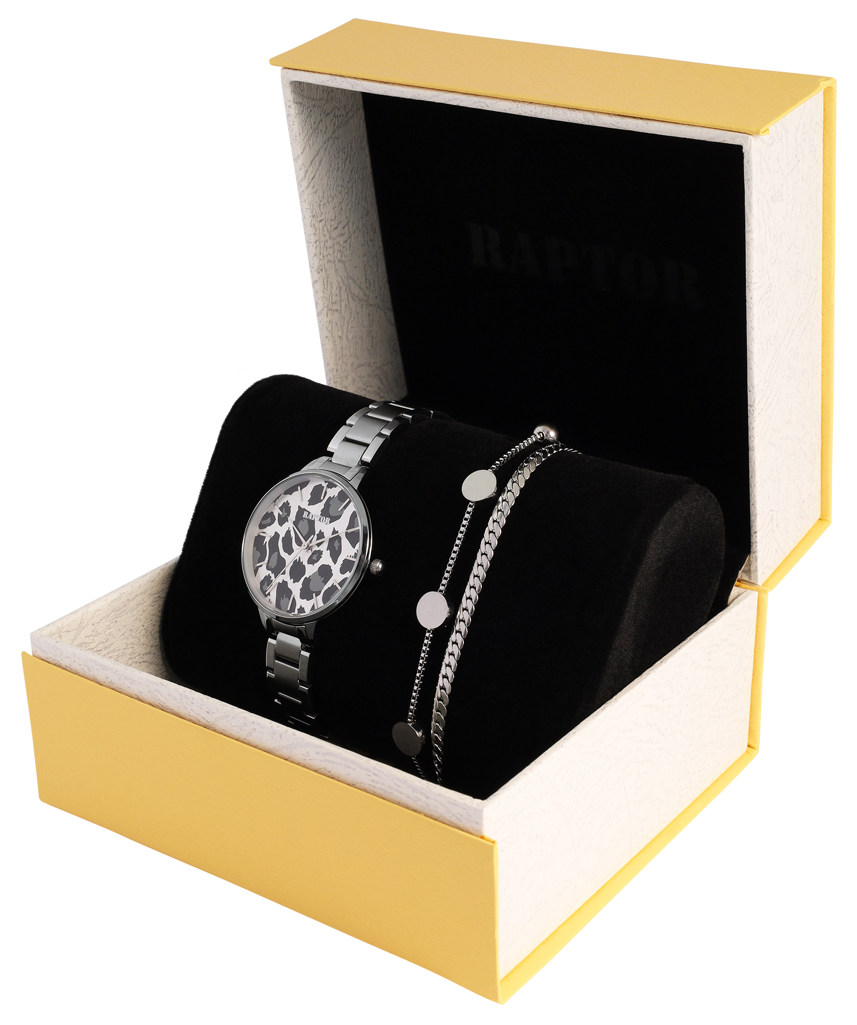 De exclusieve Raptor dames geschenksets bieden de ideale combinatie van een stijlvol dameshorloge en een harmonieus gecoördineerd sieraad (armband of halsketting). Onze geschenksets zijn vrouwelijk vormgegeven en passen perfect bij elkaar. Er zijn verschillende ontwerpen die bij elke stijl passen: