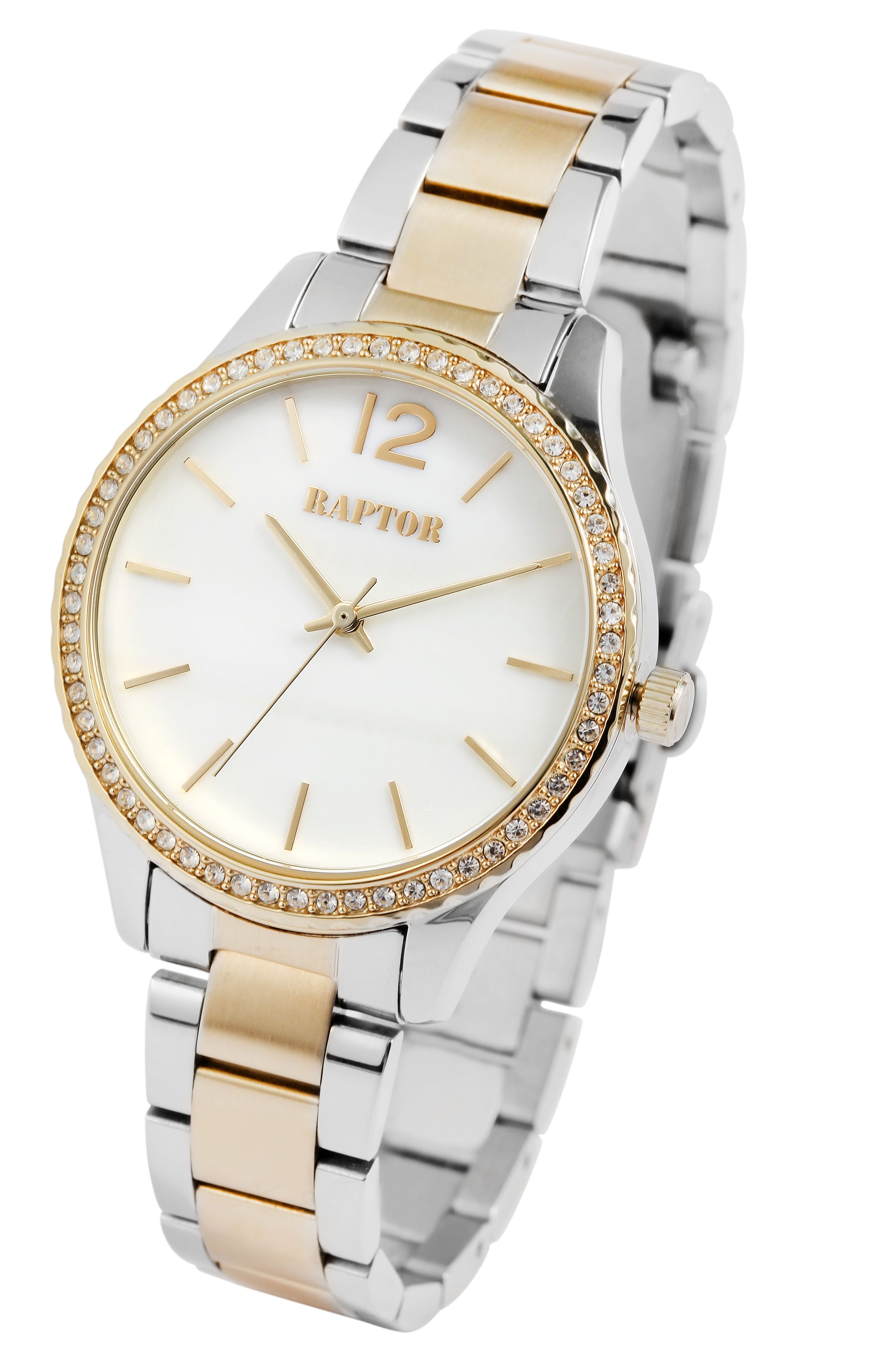 Productinformatie "Raptor dameshorloge "Pia" met roestvrijstalen armband, zilver- & goudkleurig"