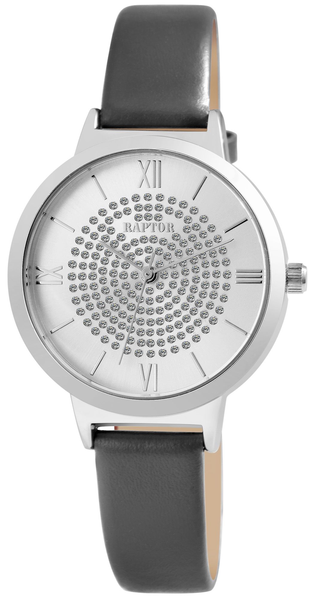 Productinformatie "Raptor dameshorloge "Tess" met echt lederen band, grijs/zilverkleurig"