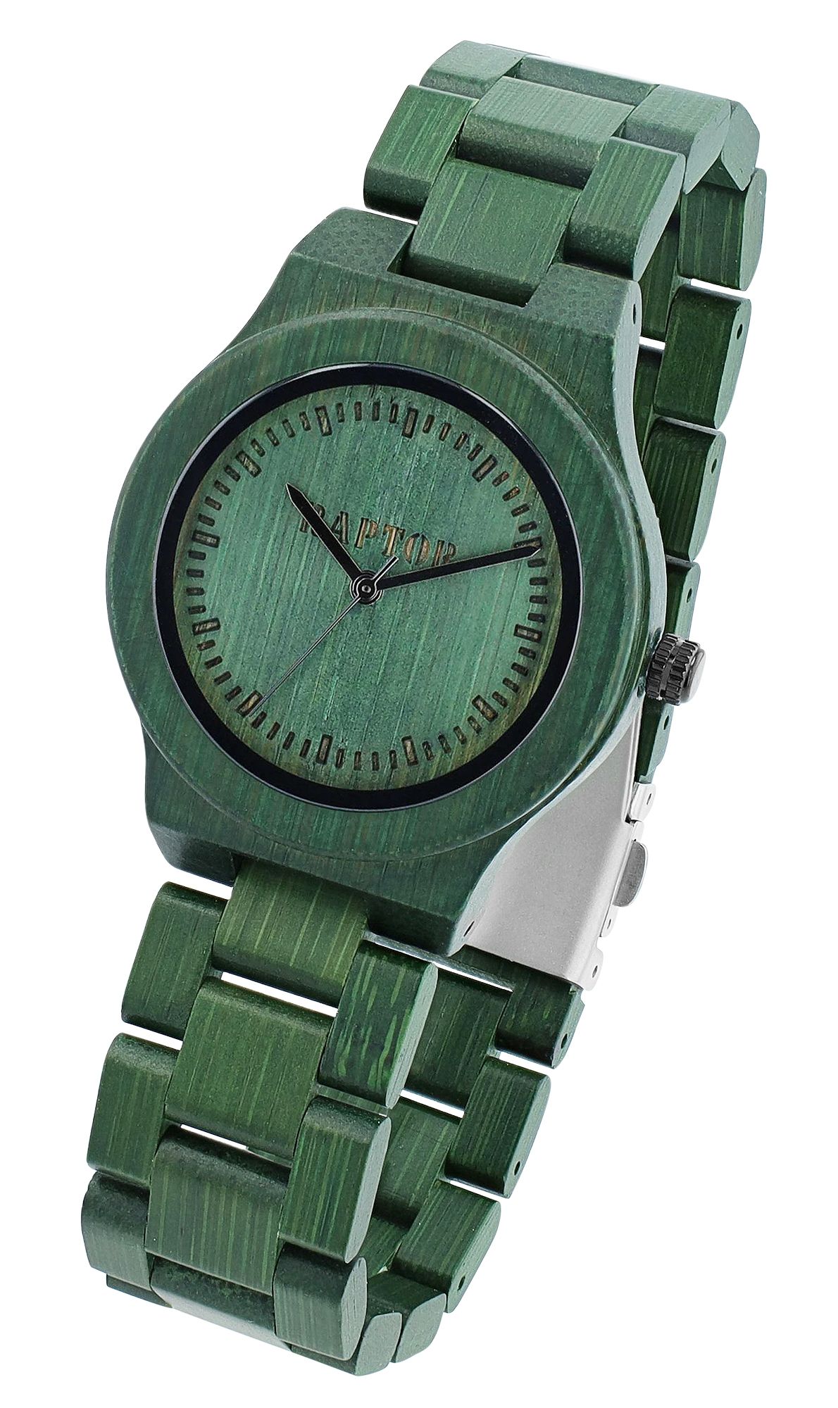 Het analoge damespolshorloge met 3 wijzers van het merk Raptor heeft een hoogwaardig kwartsuurwerk. De veelkleurige schakelarmband van bamboe is 20 mm breed bij de lug en kan worden geopend en gesloten met een zilverkleurige roestvrijstalen vouwsluiting. De totale lengte van het horloge is 23,5 cm. De veelkleurige bamboe kast met mineraalglas heeft een diameter van 38 mm en een kasthoogte van 11 mm. Een bijzondere blikvanger is het mineraalglas met een 1,5 mm brede, zwarte spiegelrand. Samen met de zwarte kroon rondt dit de unieke look van het horloge af. De wijzerplaat is ook gemaakt van bamboe en heeft dezelfde kleuren als de band en kast. De zwarte wijzers passen goed bij de algehele look van het horloge. Met het Raptor houten horloge draag je een absolute eyecatcher om je pols die met elke gelegenheid gecombineerd kan worden. Dankzij het lichtgewicht materiaal past het perfect om de pols en is het comfortabel om te dragen. Je ontvangt een garantiekaart en een originele Raptor doos als accessoires voor je product. Het horloge is een perfect cadeau. Bijvoorbeeld voor een verjaardag, Moederdag, Kerstmis of Valentijnsdag.