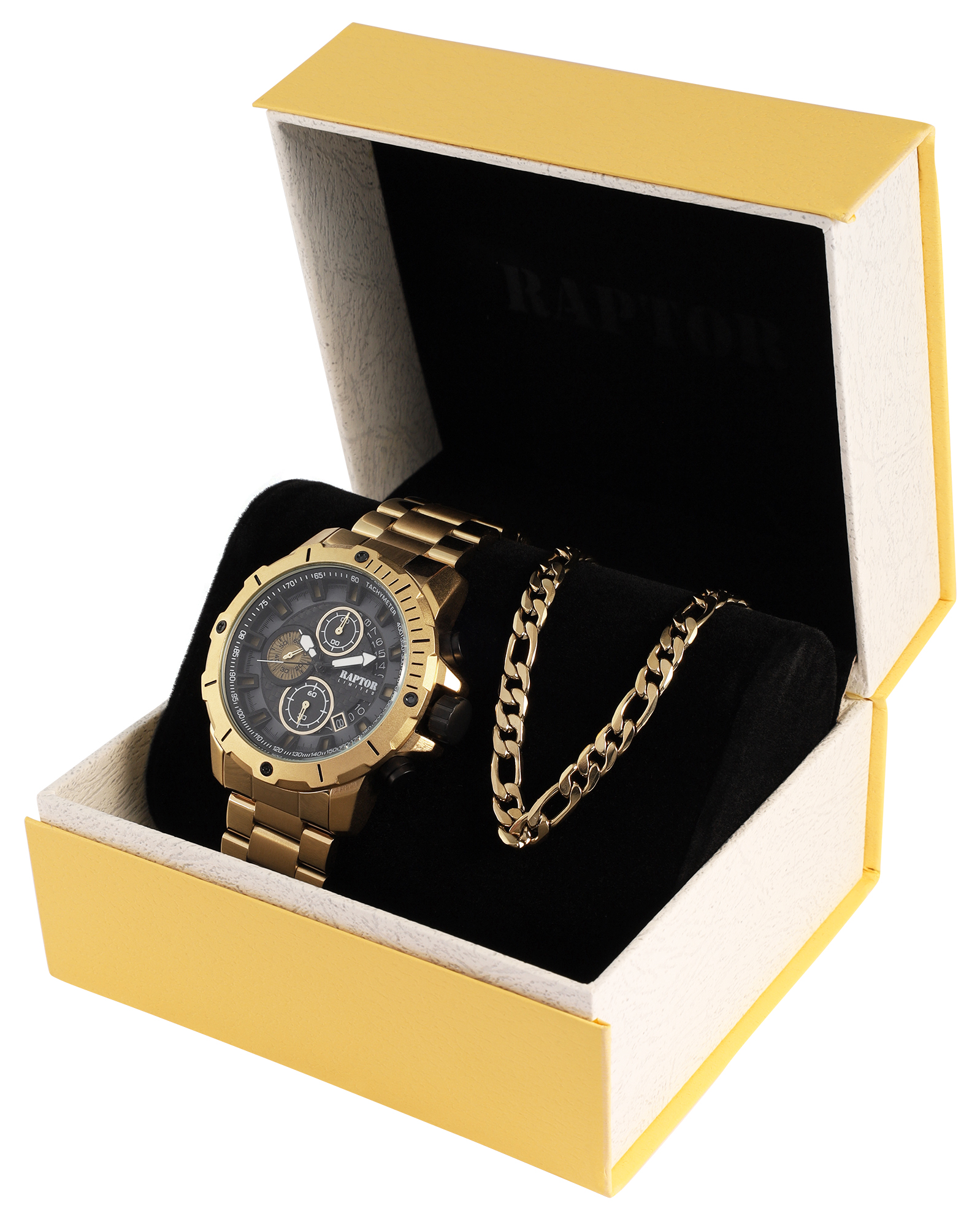 De exclusieve Raptor geschenksets bieden de perfecte combinatie van een opvallend herenhorloge en een harmonieus op elkaar afgestemd accessoire (armband of ketting). Onze geschenksets bieden verschillende designs voor elke stijl:
