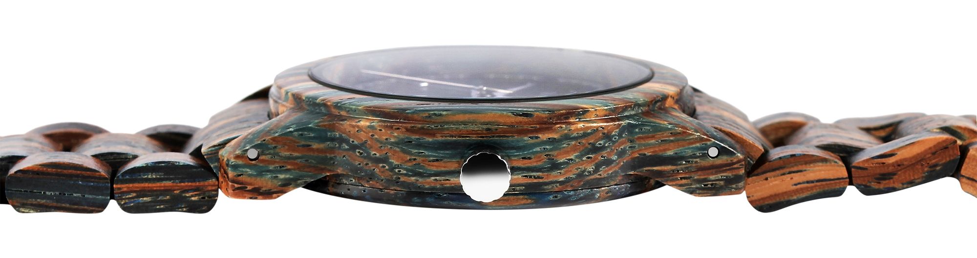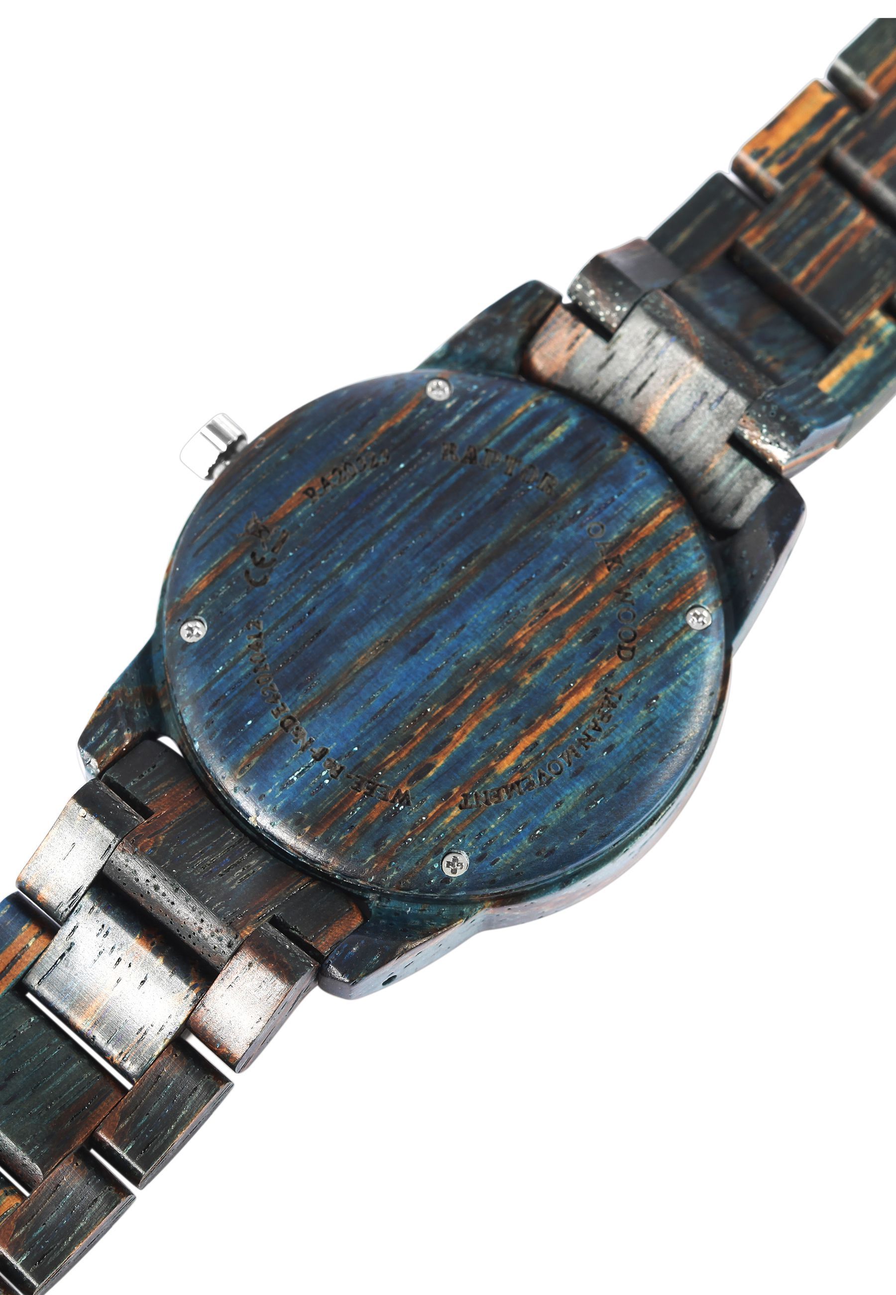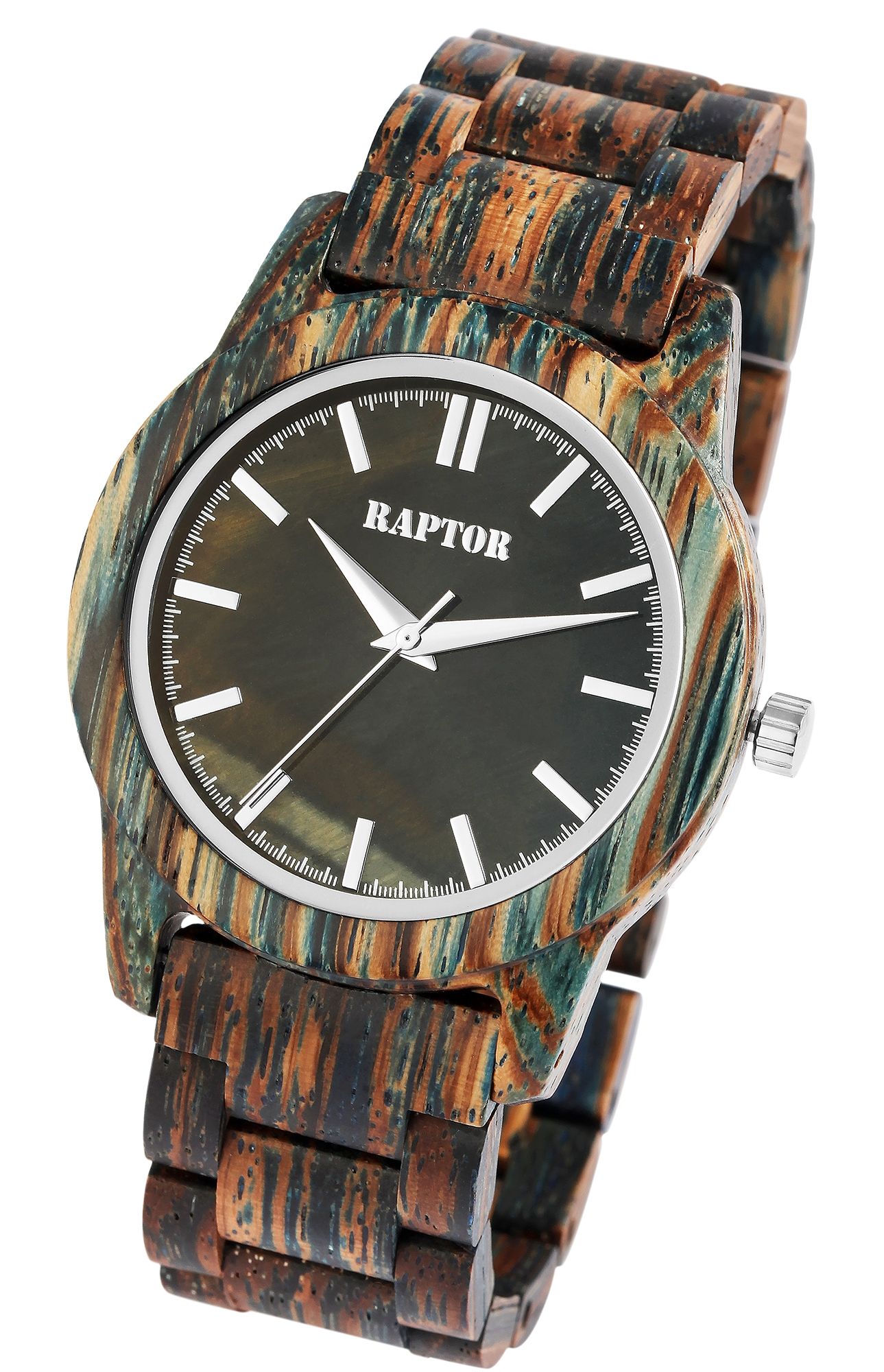 Productinformatie "Raptor herenpolshorloge "Elementary" in blauwachtig eikenhout"