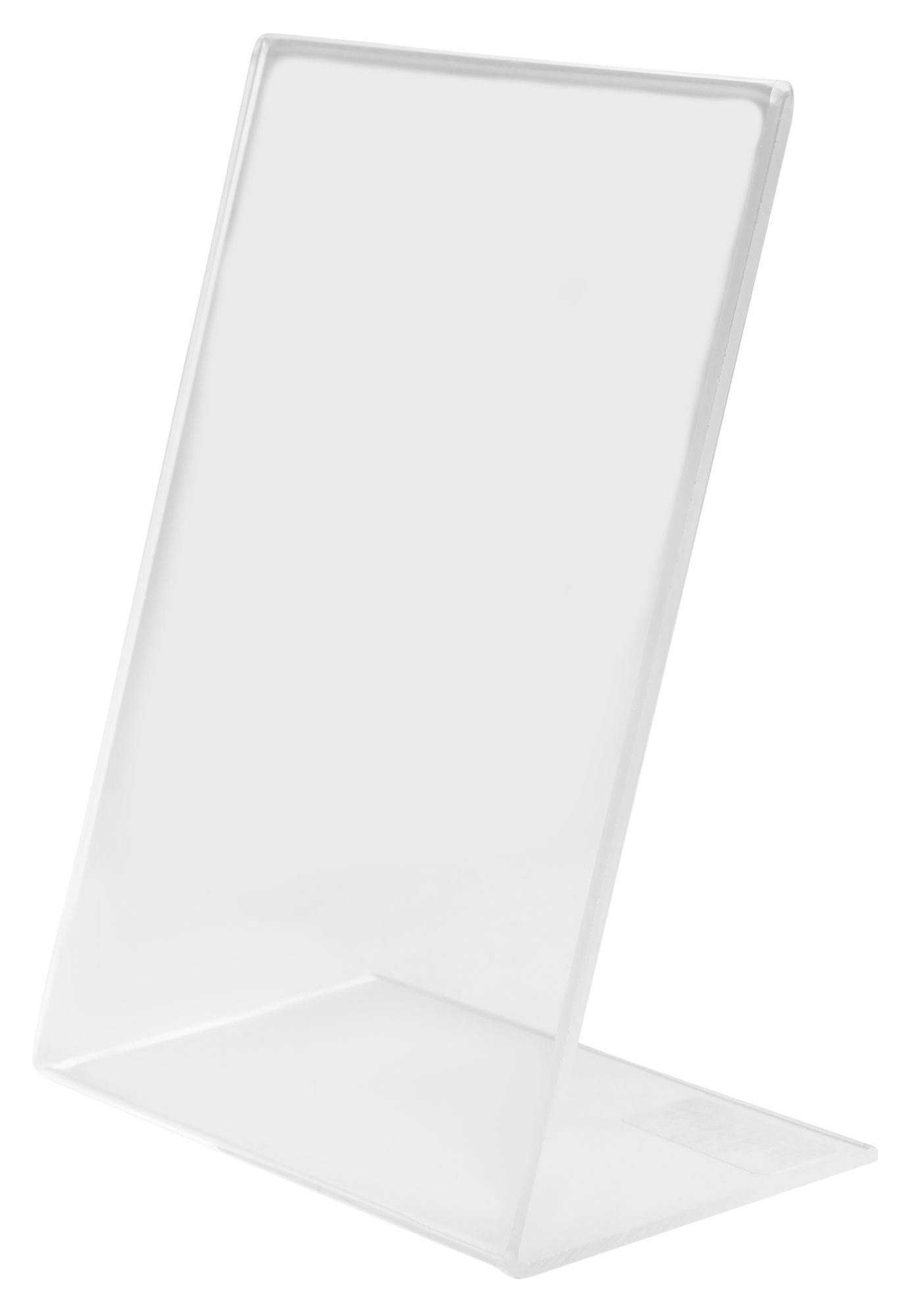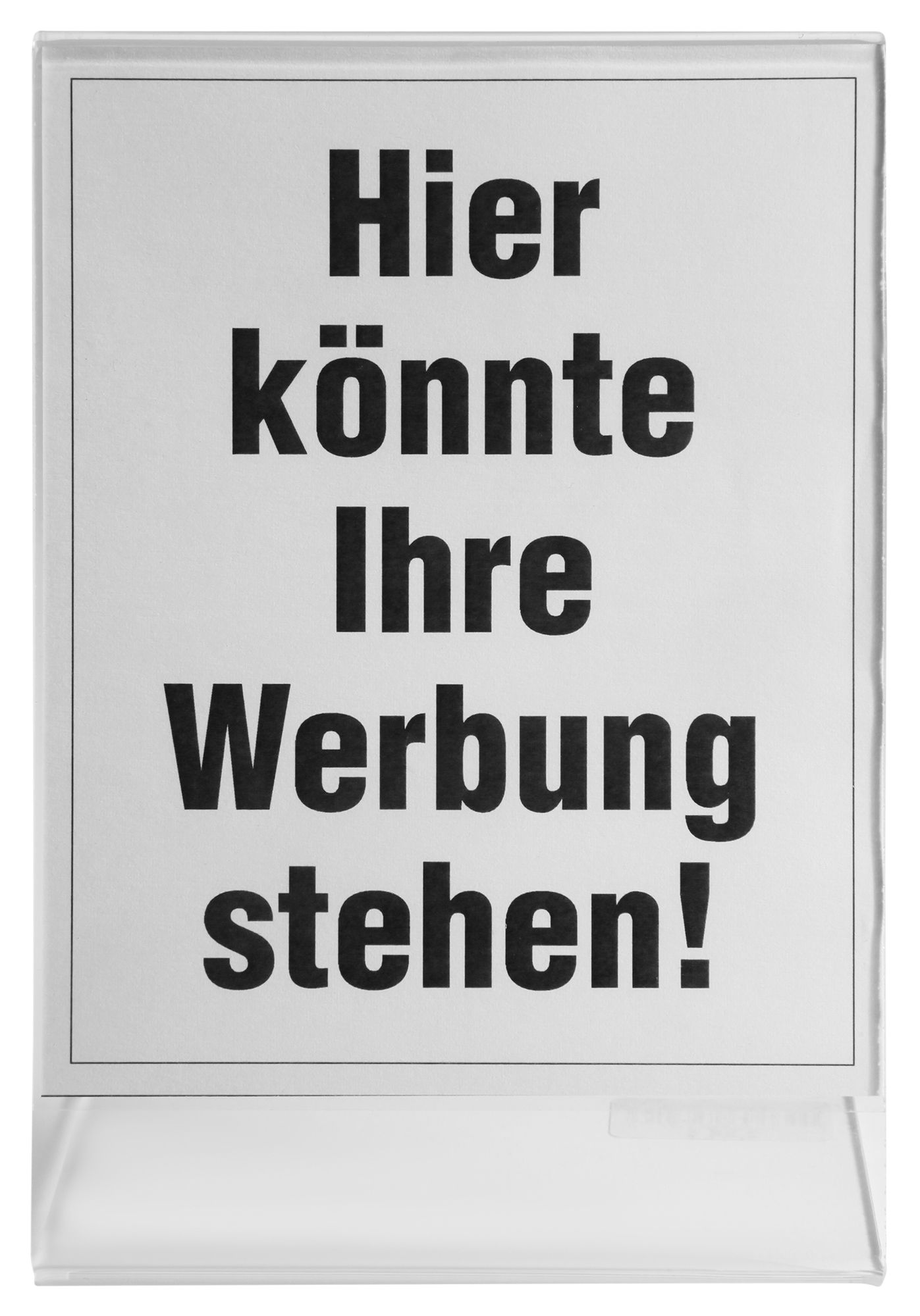 De transparante reclamestandaard met inschuifvak in DIN A6 staand formaat is gemaakt van kunststof. Het is een geweldige blikvanger op toonbanken, tafels, etalages of showrooms en kan op verschillende manieren worden gebruikt. Of het nu voor reclamedoeleinden, prijsetikettering of als informatiebord is, de standaard biedt tal van mogelijkheden. De hoogwaardige kunststof standaard belooft een hoge mate van stabiliteit en stevigheid. De afmetingen zijn 15 cm lang, 10,5 cm breed en 7 cm diep.