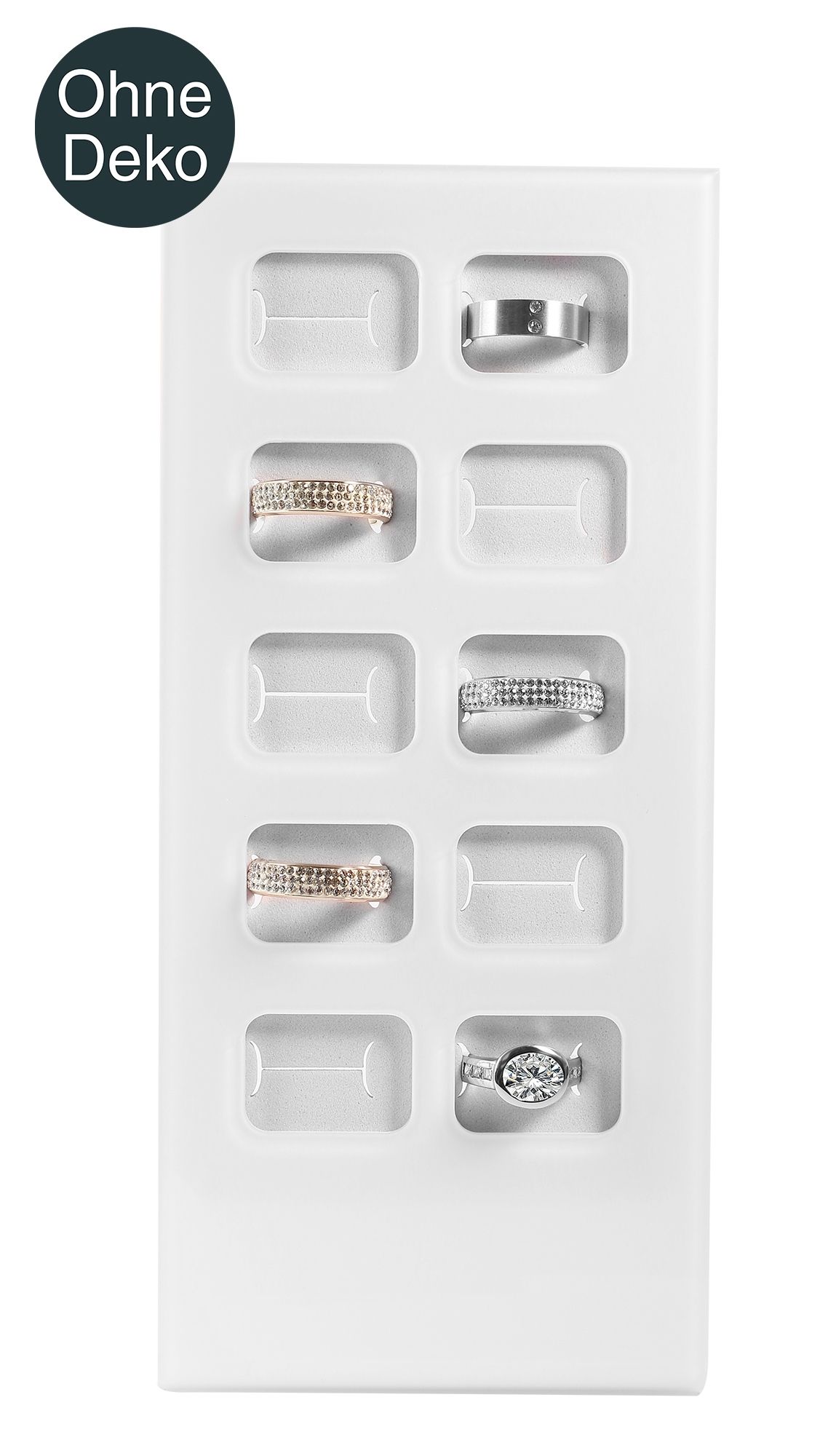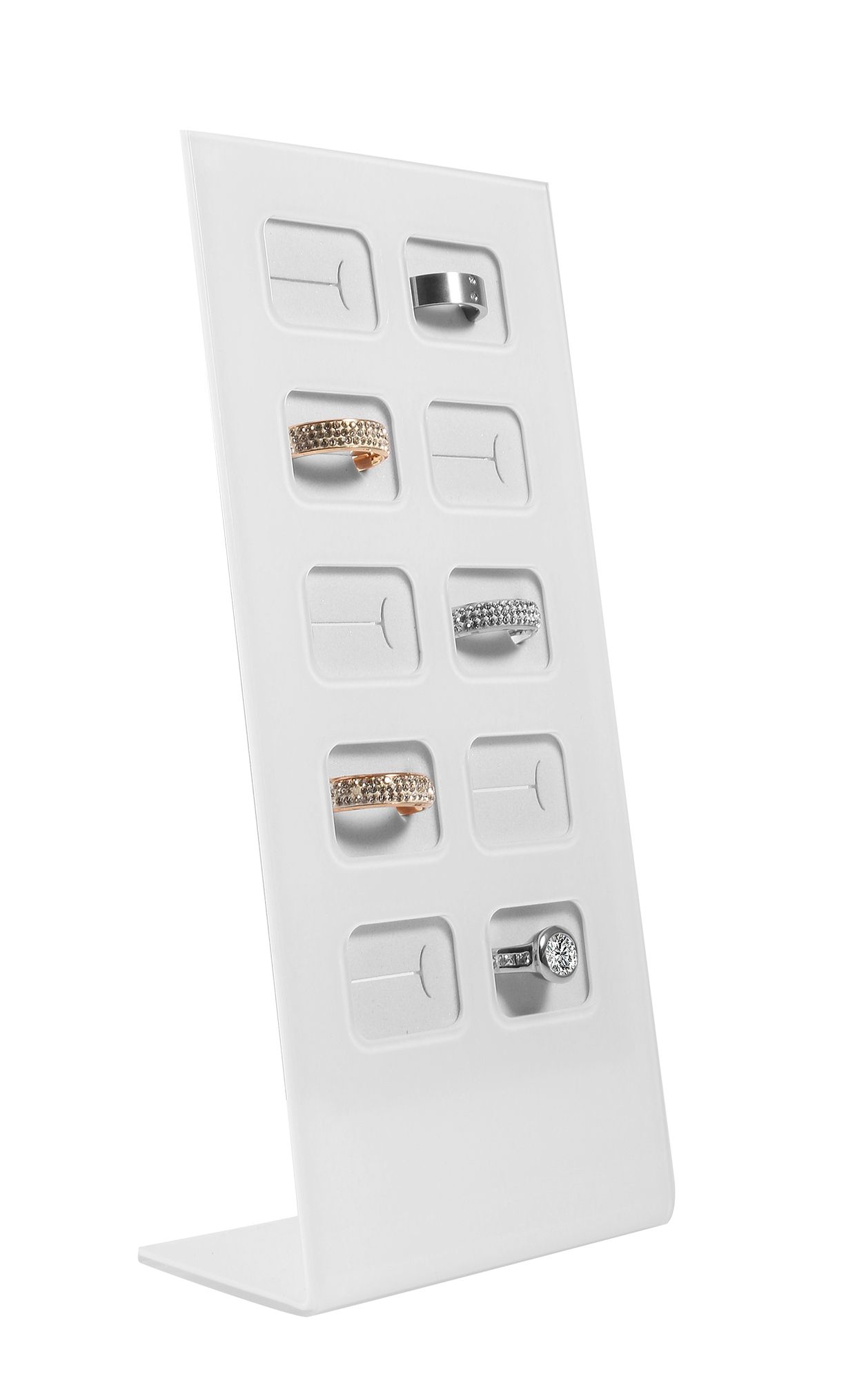 Productinformatie "Ringstandaard voor 10 ringen, acryl, 20,5 x 9,5 x 4,5 cm, wit"