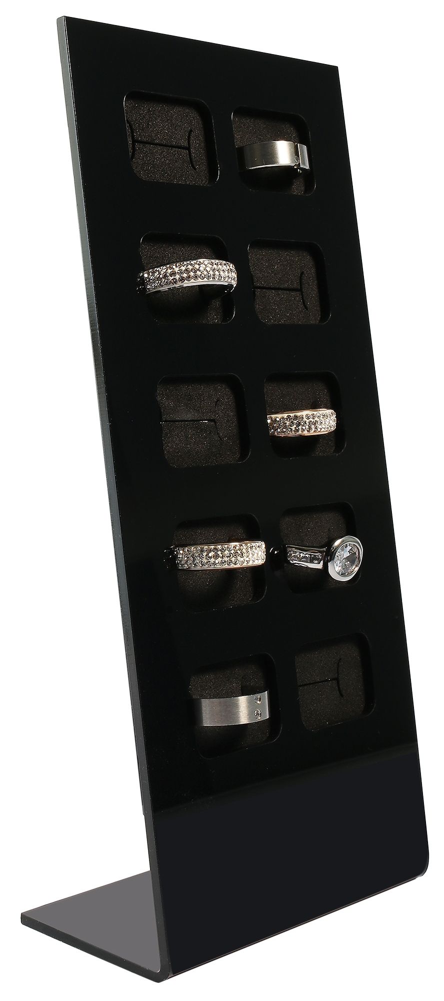 Productinformatie "Ringstandaard voor 10 ringen, acryl, 20,5 x 9,5 x 4,5 cm, zwart"