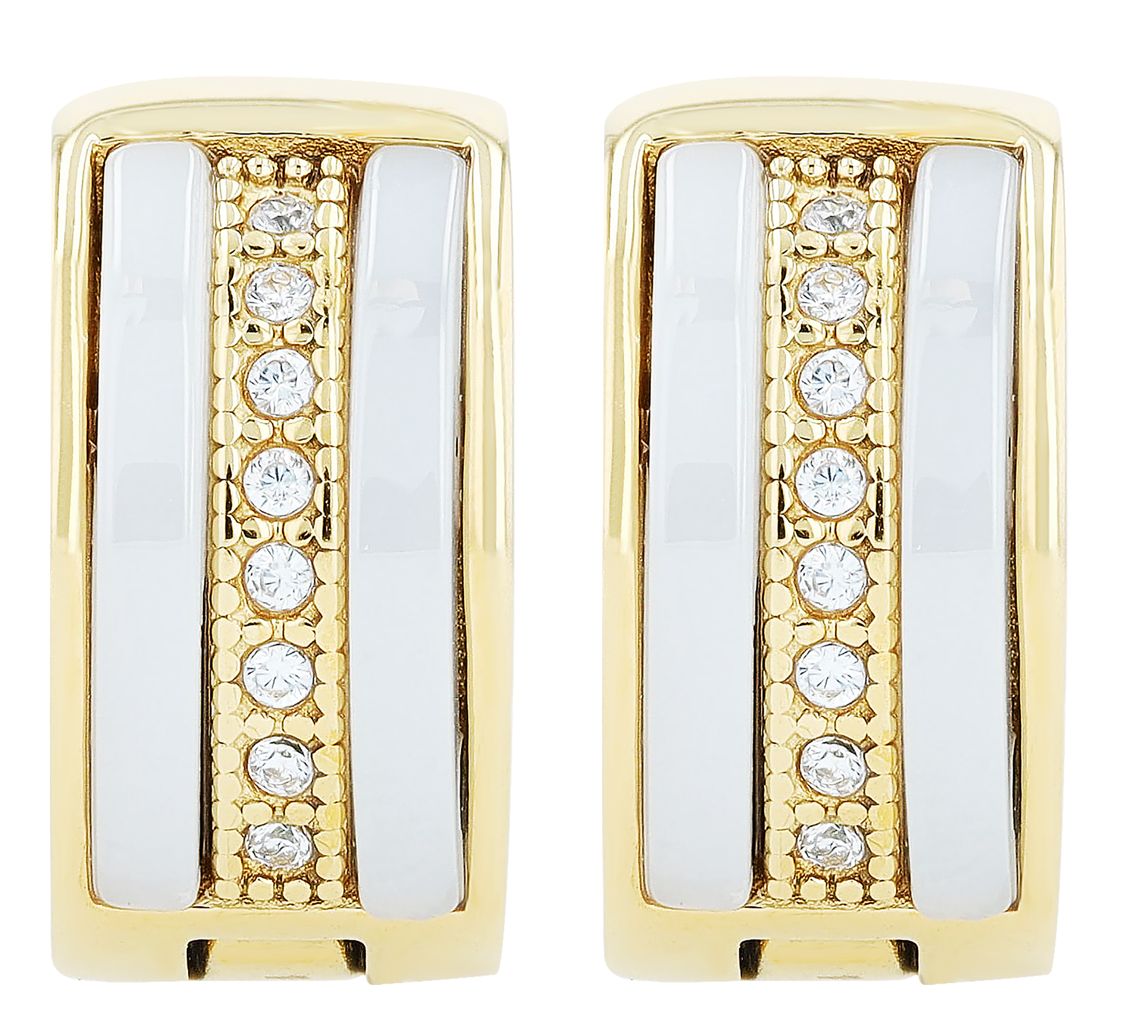 Productinformatie ""Rita" accent oorbellen van roestvrij staal, keramiek, zirkonia, goudkleurig"