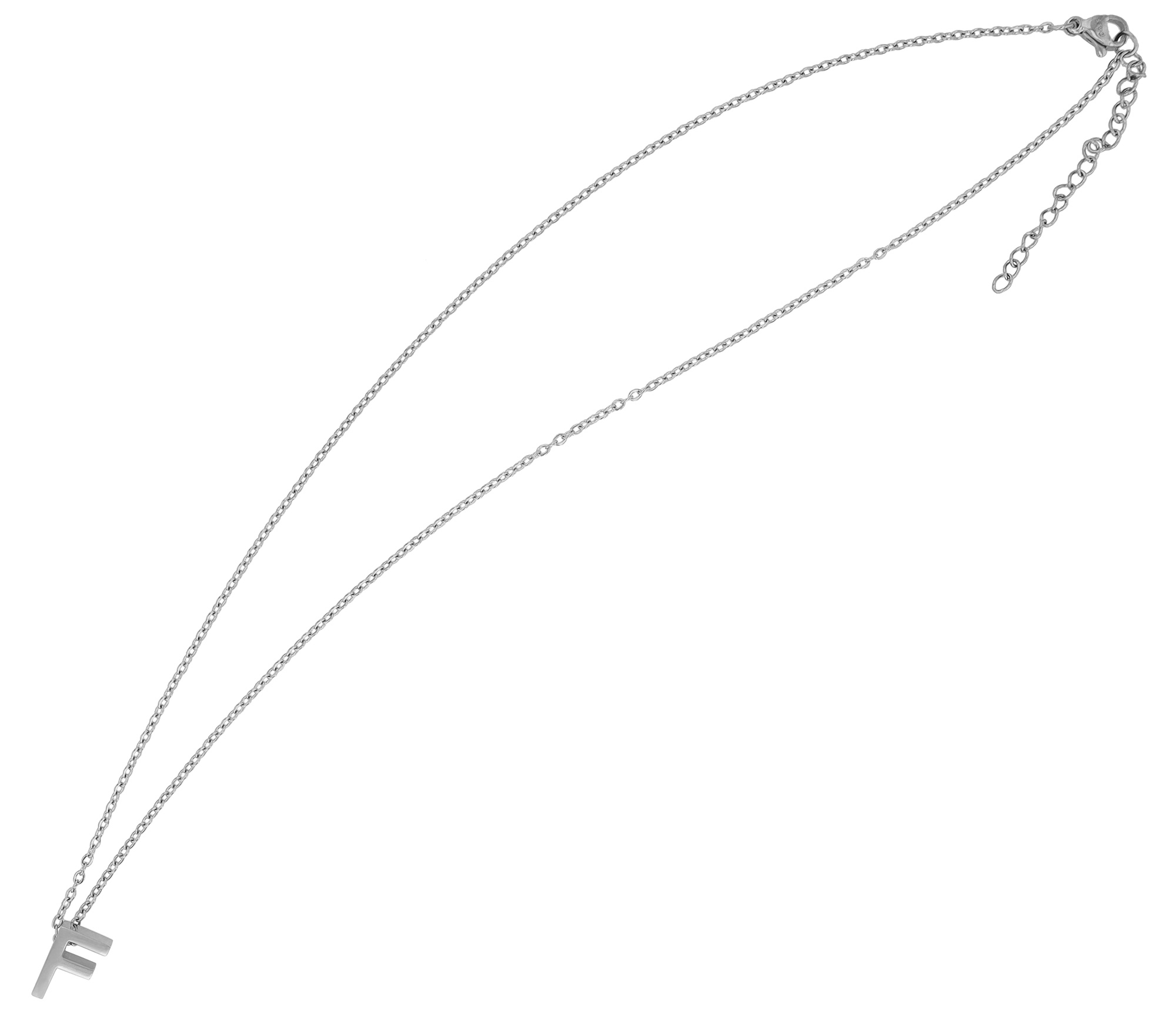 Productinformatie "Roestvrijstalen "Courrier"-ketting met initialen "F", zilverkleurig, 45 + 5 cm"