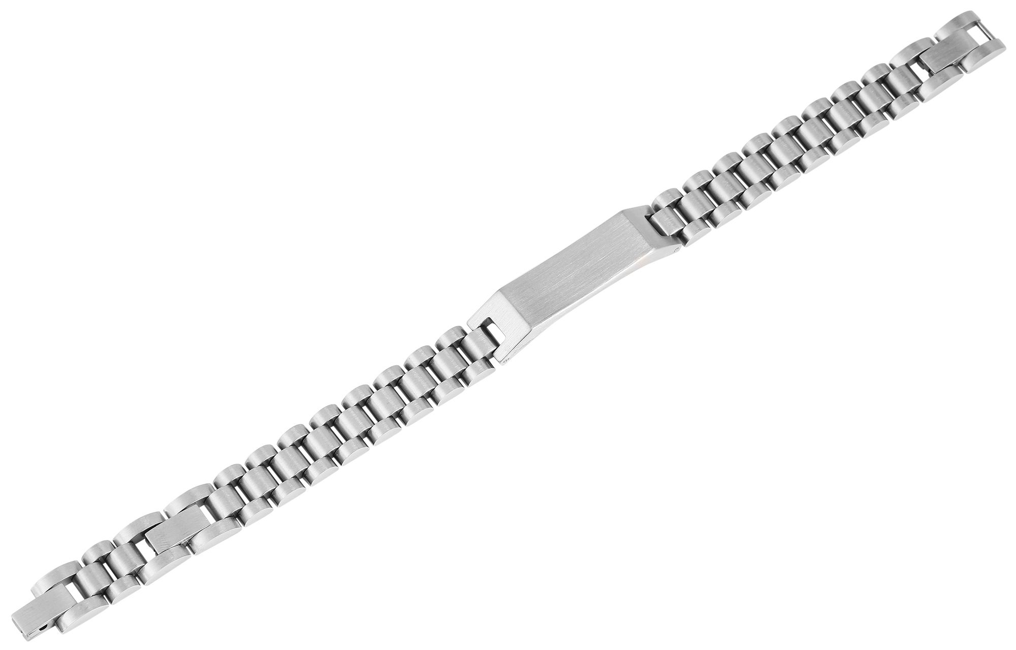 De Akzent armband is gemaakt van roestvrij staal en bevat een 41 mm lang identificatieplaatje. Het is 11 mm breed en biedt genoeg ruimte voor verschillende gravures. De armband heeft een totale lengte van 19 cm, een breedte van 1 cm en een materiaaldikte van 0,5 cm. De eenvoudige armband kan worden geopend en gesloten met een roestvrijstalen haaksluiting en dankzij het verlengstuk van 1,5 cm kan hij aan elke pols worden aangepast. Het oppervlak heeft een gepolijste look, waardoor de armband een bijzonder accessoire is.