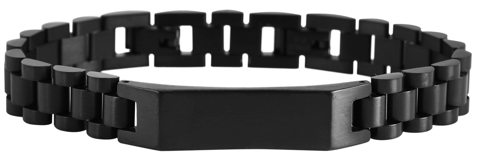 De Akzent armband is gemaakt van roestvrij staal en bevat een 41 mm lang identificatieplaatje. Het is 11 mm breed en biedt genoeg ruimte voor verschillende gravures. De armband heeft een totale lengte van 19 cm, een breedte van 1 cm en een materiaaldikte van 0,5 cm. De eenvoudige armband kan worden geopend en gesloten met een roestvrijstalen haaksluiting en dankzij het verlengstuk van 1,5 cm kan hij aan elke pols worden aangepast. Het oppervlak heeft een gepolijste look, waardoor de armband een bijzonder accessoire is.
