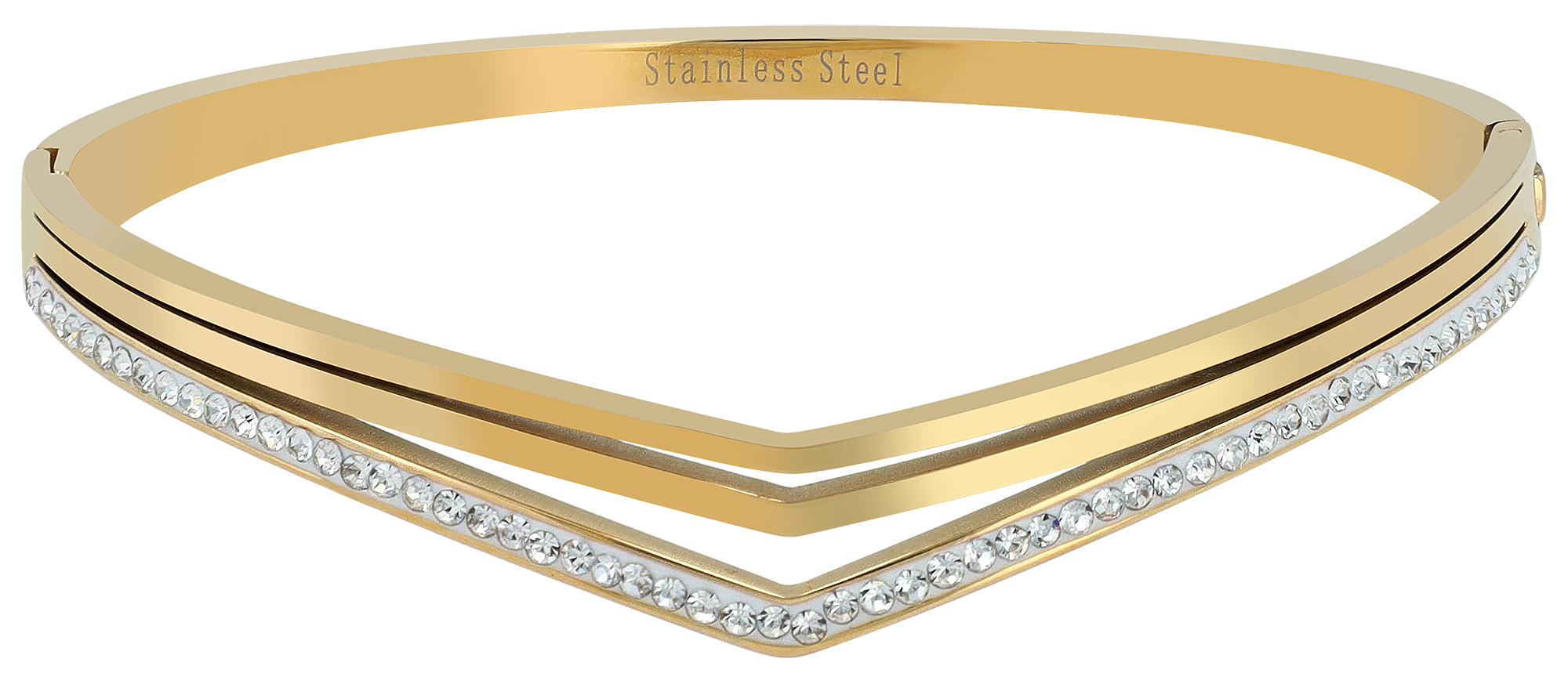 Deze stijlvolle armband heeft een unieke V-vormige look die je pols een moderne maar glamoureuze touch geeft.