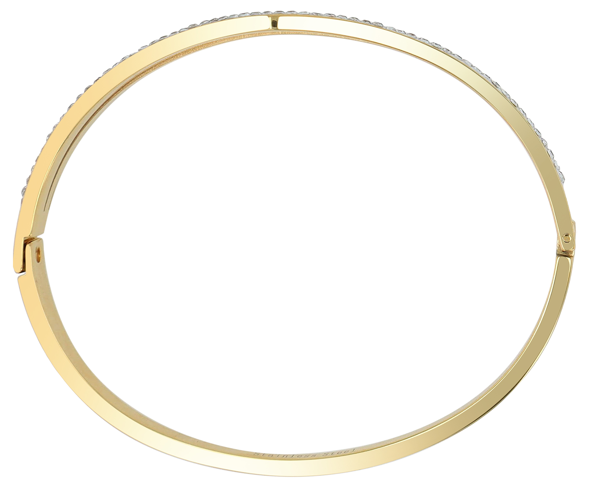 Het ontwerp is gemaakt van hoogwaardig roestvrijstaal en heeft strakke lijnen en een fonkelende similézetting. Met een binnendiameter van 6 cm en een binnenomtrek van 17 cm past deze armband om veel polsen. De breedte van 10 mm maakt het een opvallend maar niet opdringerig sieraad. De praktische scharniersluiting maakt het gemakkelijk en veilig om om te doen en af te doen.