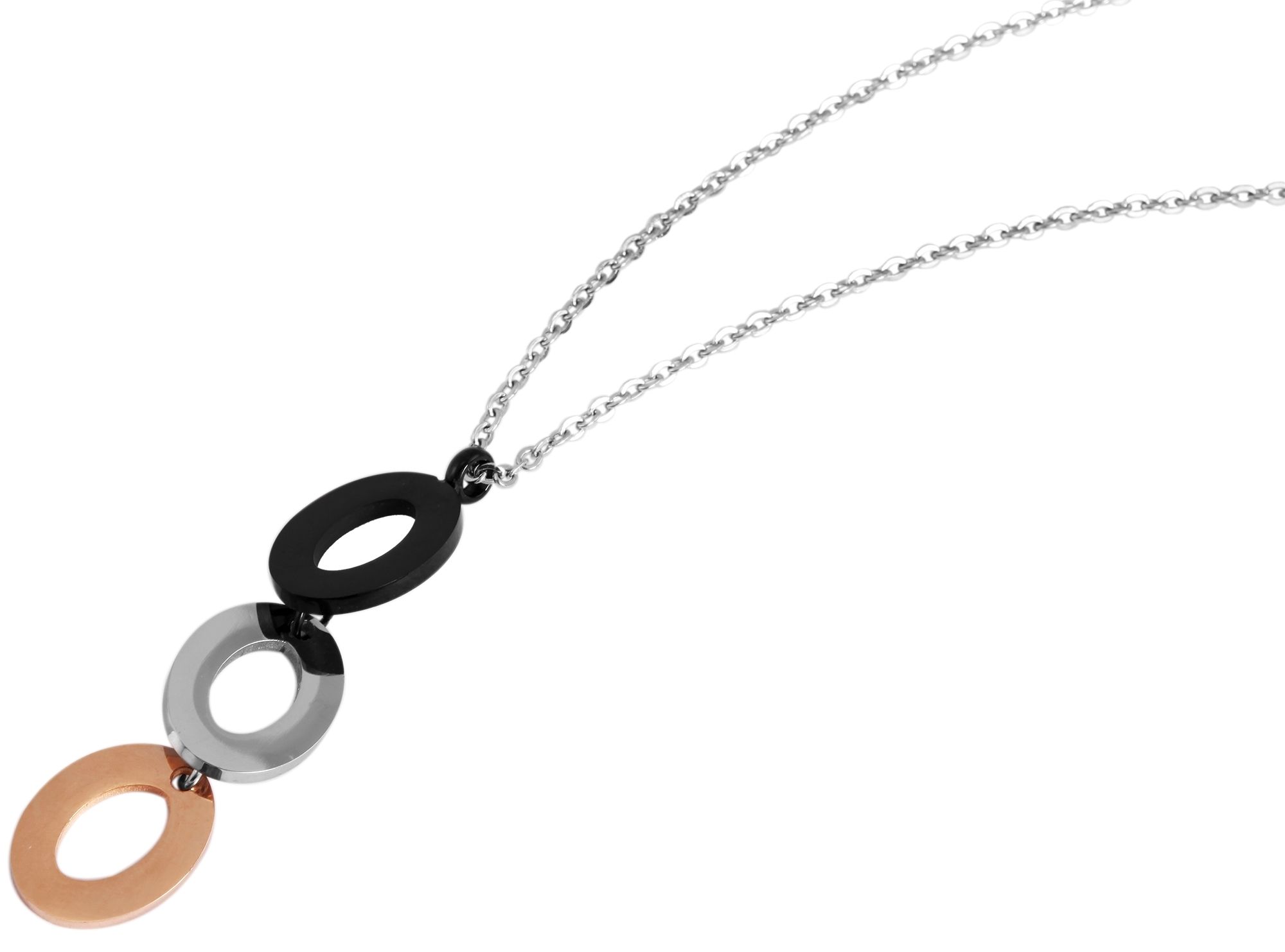 Productinformatie "Roestvrijstalen sieradenset, halsketting 43 + 5cm met hanger + oorbellen, driekleur"