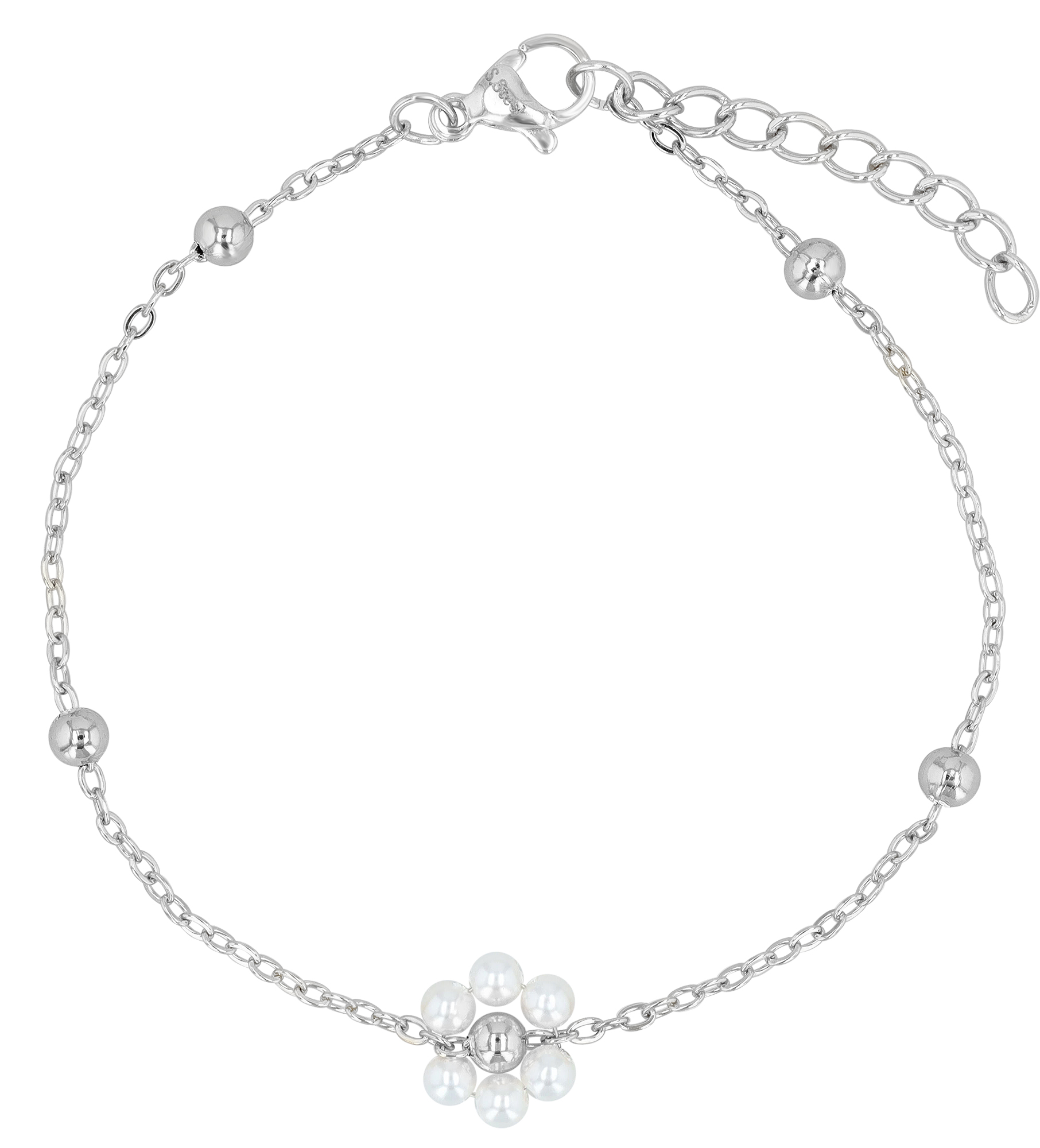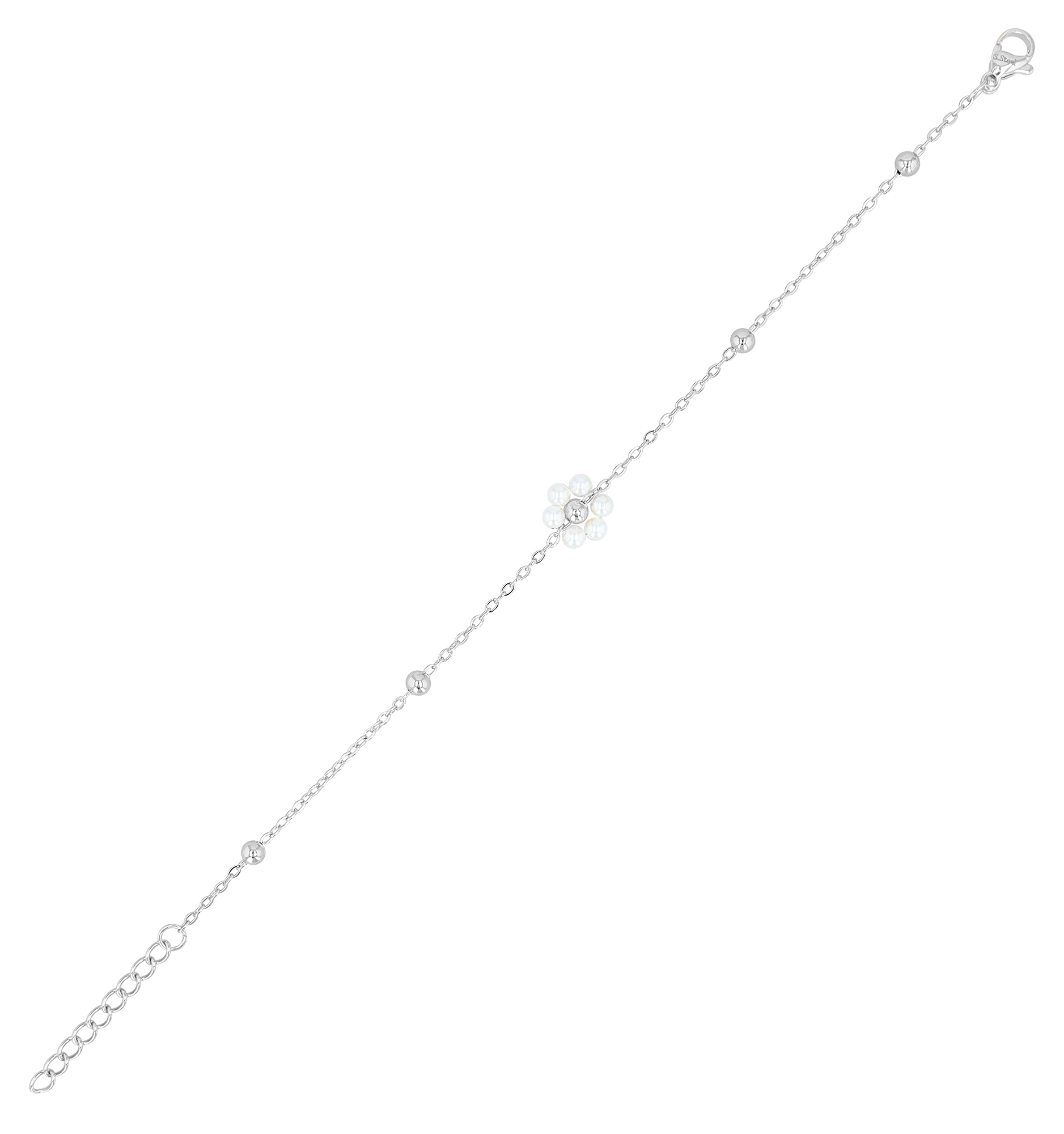 Productinformatie ""Rojana" Armband (17+3 cm), Edelstahl/ Glasperle, Blüte, silberfarben"