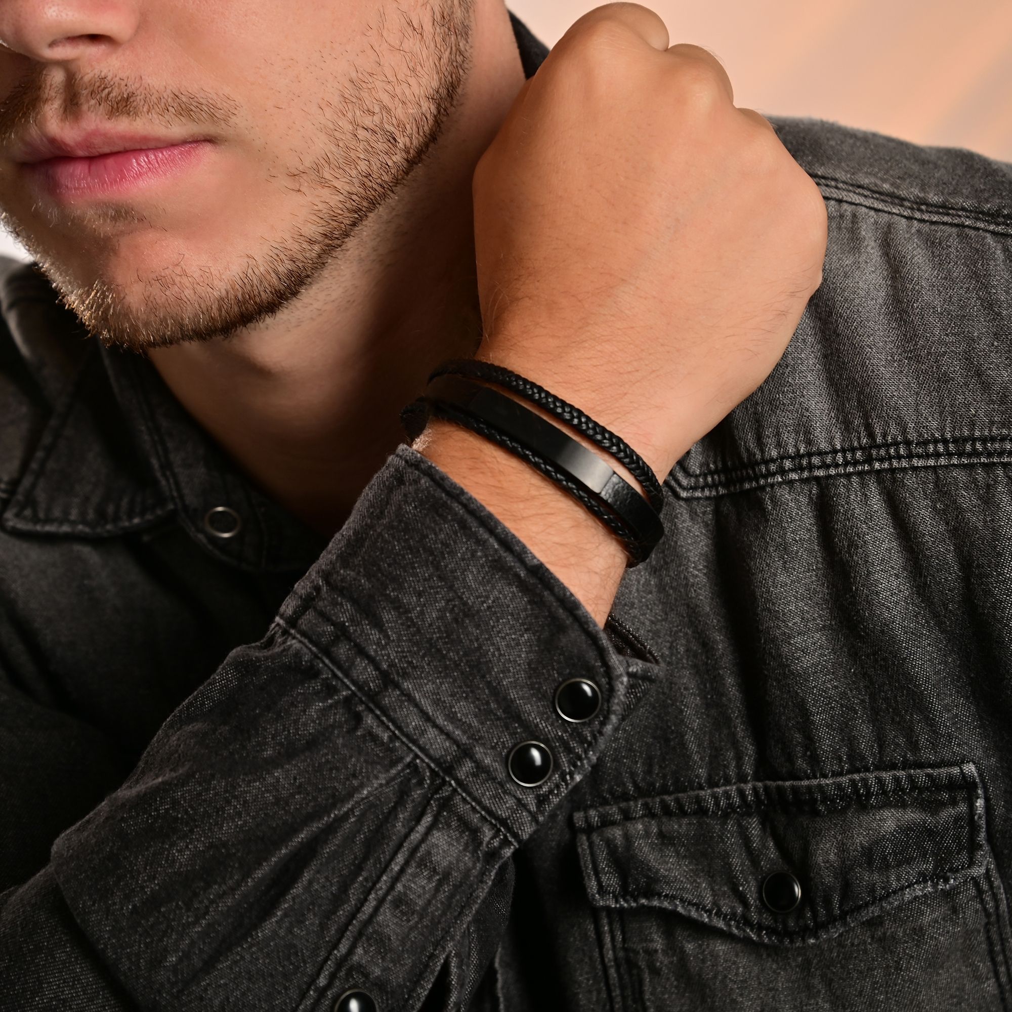 De roestvrijstalen elementen passen perfect bij de mannelijke look. Personaliseer de armband zo veel mogelijk met een speciale naam, initialen of een kleine boodschap.