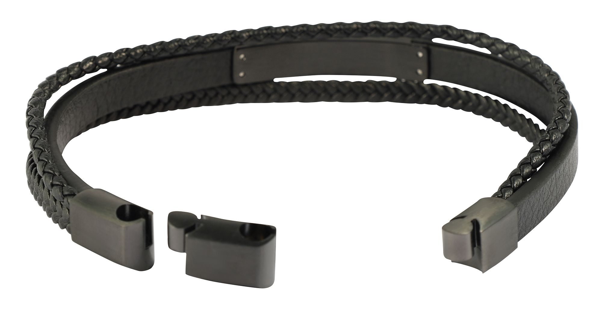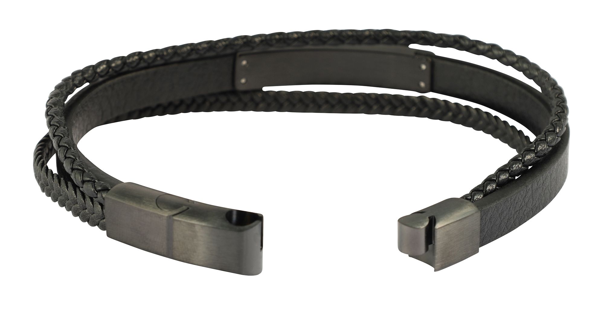 Productinformatie ""Romeo" armband van imitatieleer met roestvrij stalen elementen, 19cm"