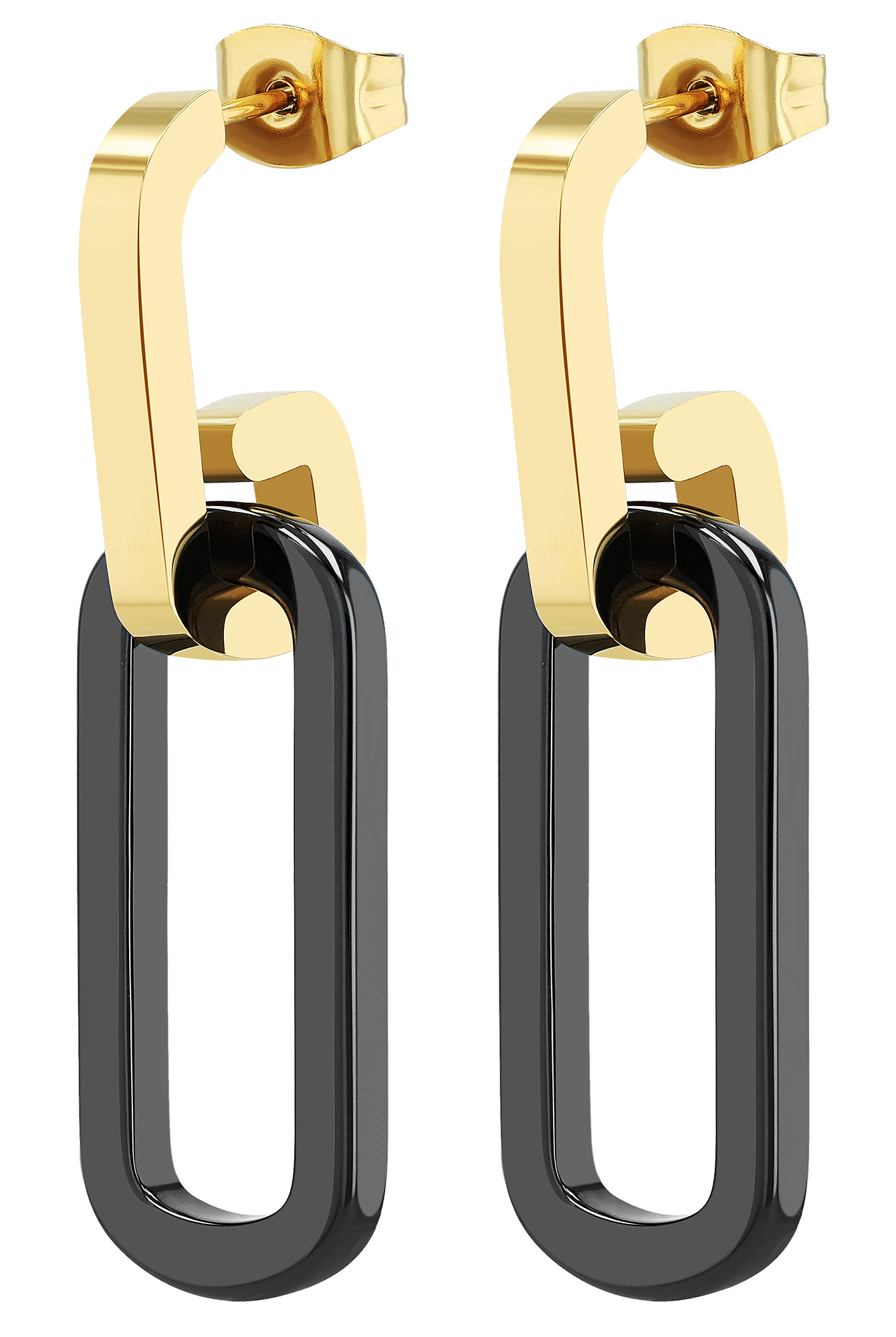 Productinformatie ""Romi" Akzent Edelstahl-Keramik Ohrringe, goldfarben/ schwarz"