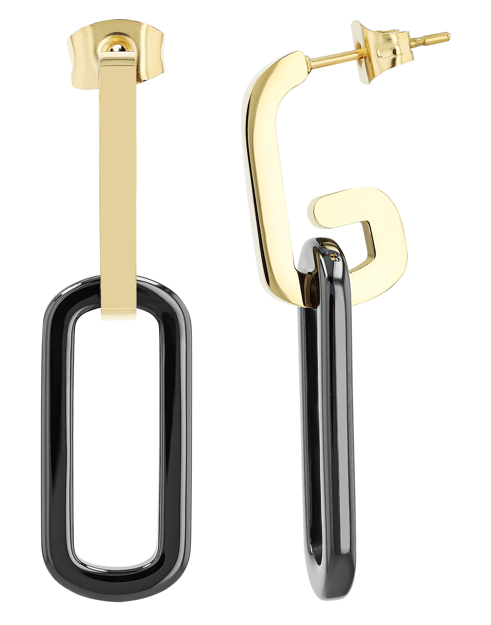 Deze stijlvolle oorbellen combineren modern design met een ongebruikelijke look. Ze zijn gemaakt van hoogwaardig roestvrij staal met een push-in sluiting en de beweegbare keramische hanger is verkrijgbaar in wit of zwart. Met een knophoogte van 18 mm en een bungel van 25 mm bieden ze de perfecte balans tussen subtiele elegantie en expressieve stijl. Verkrijgbaar in elegant zilverkleurig of glanzend goudkleurig, kunnen deze oorbellen op verschillende manieren gecombineerd worden en zijn ze ideaal voor zowel alledaags gebruik als voor speciale gelegenheden.