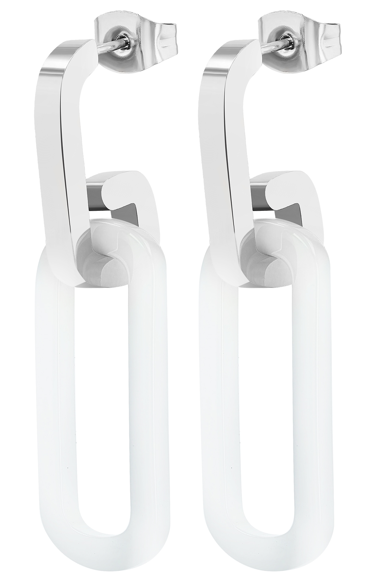 Productinformatie ""Romi" Akzent Edelstahl-Keramik Ohrringe, silberfarben/ weiß"