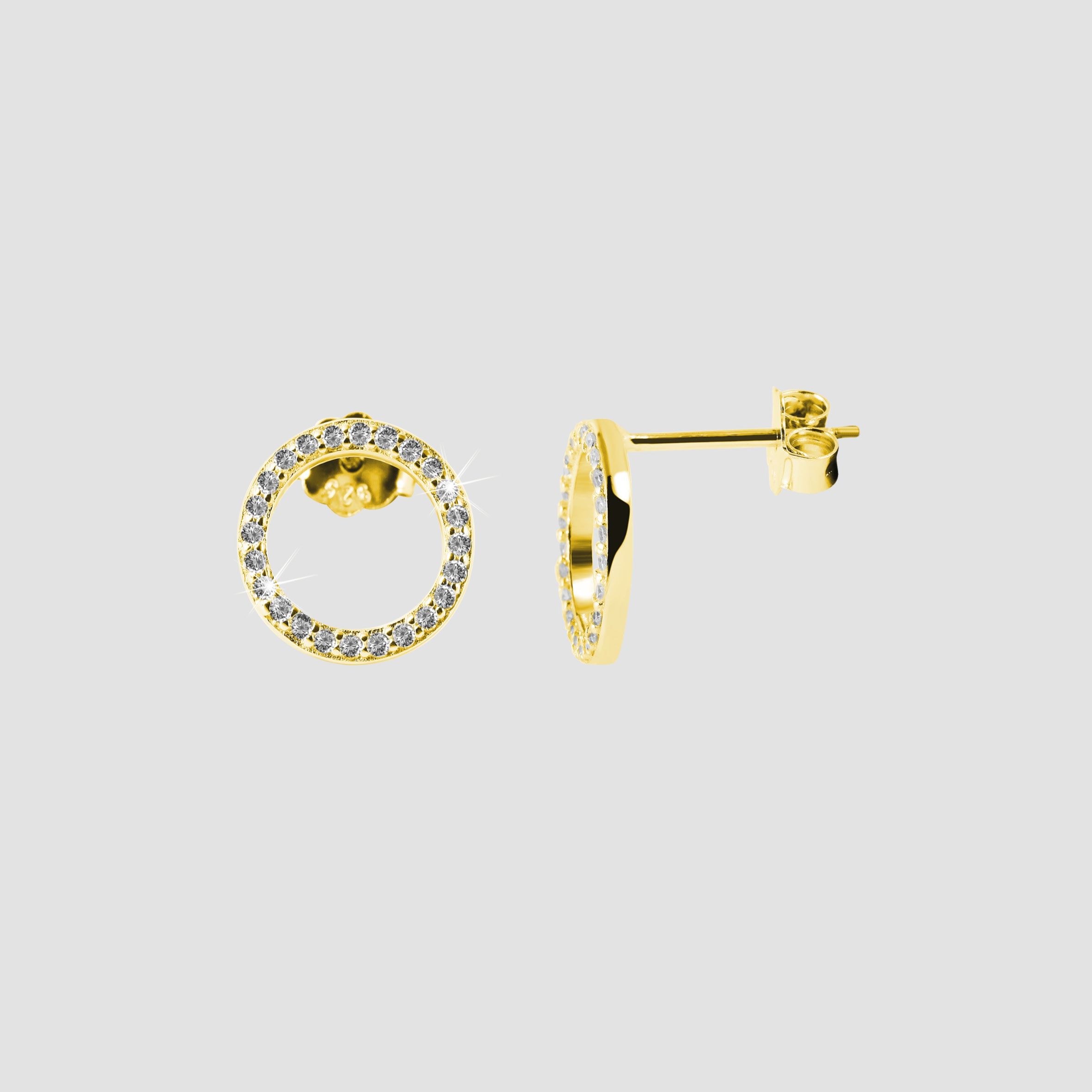 De ronde oorstekers zijn gemaakt van 925/- sterling zilver en verguld. De oorstekers zijn open in het midden en zijn rondom versierd met 25 fonkelende zirkonia steentjes. Dit maakt de oorbellen eenvoudig en tijdloos, maar ze stralen toch een grote elegantie uit. De oorbellen kunnen aan de achterkant van het oorgat worden vastgezet met een vleugelschroef van echt zilver. De grootte komt voort uit een diameter van 10 mm en een dikte van 1,5 mm. Ze zijn een geweldige blikvanger en maken een modestatement dat gegarandeerd niet onopgemerkt zal blijven.