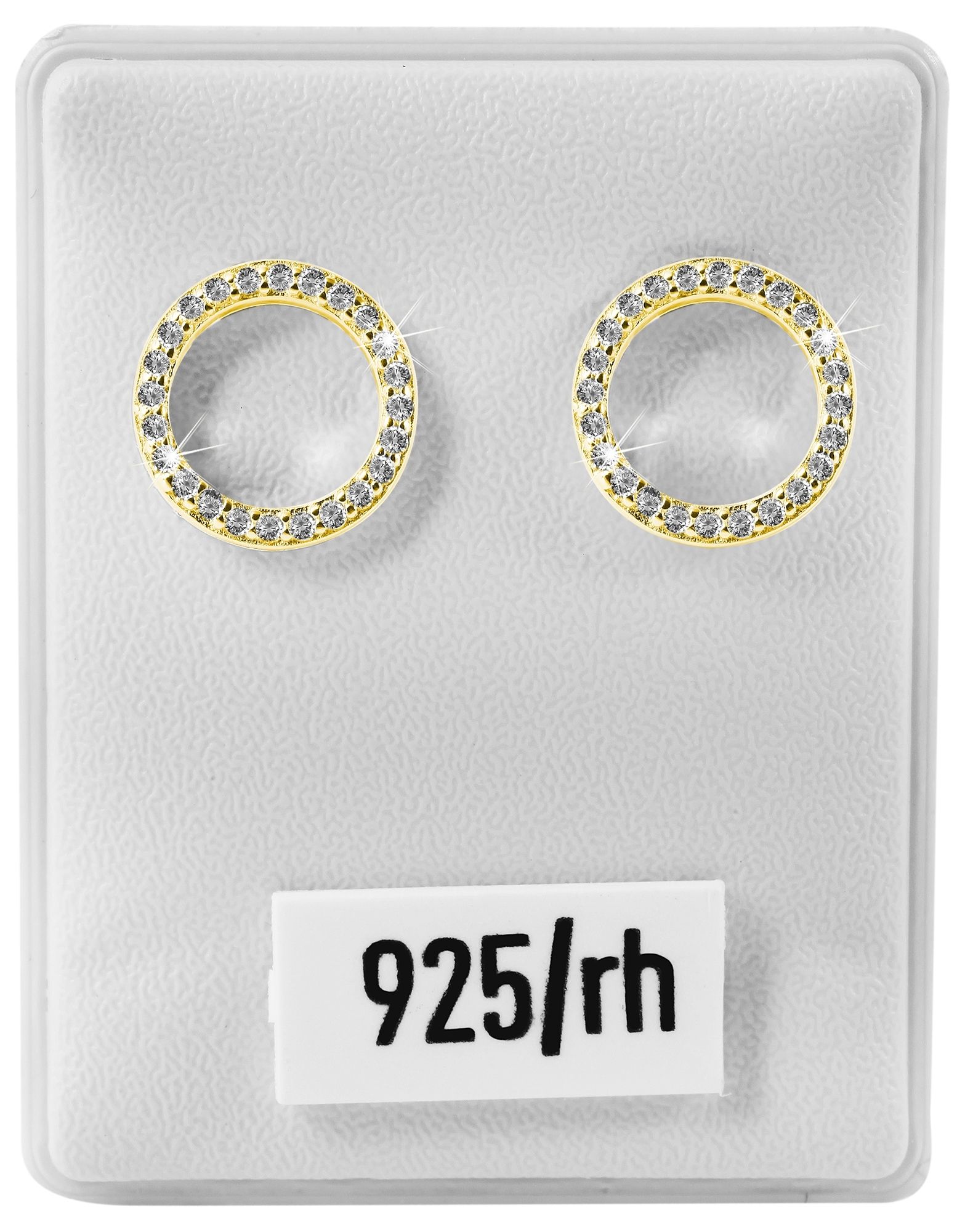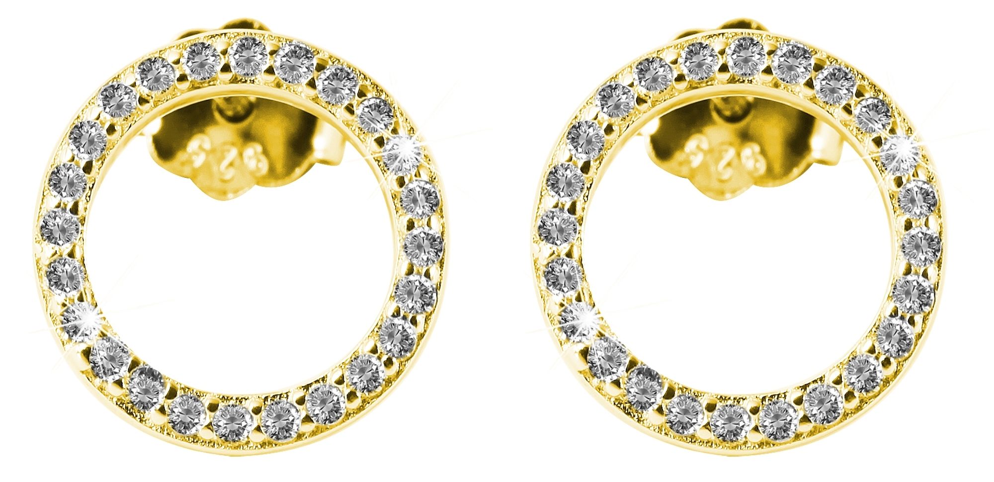 Productinformatie ""Ruth" 925/- echt zilveren oorbellen, rond, zirkonia, verguld"