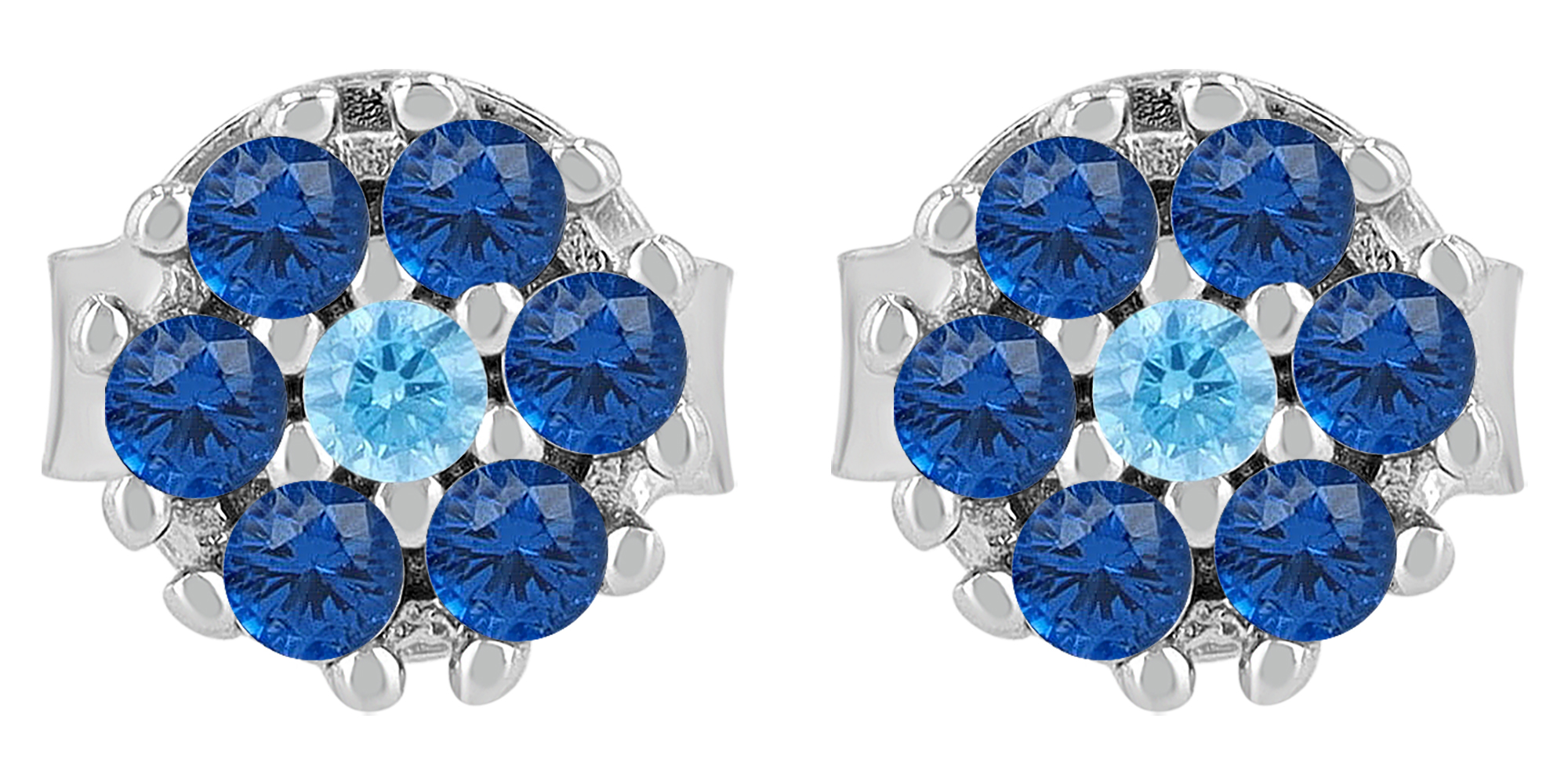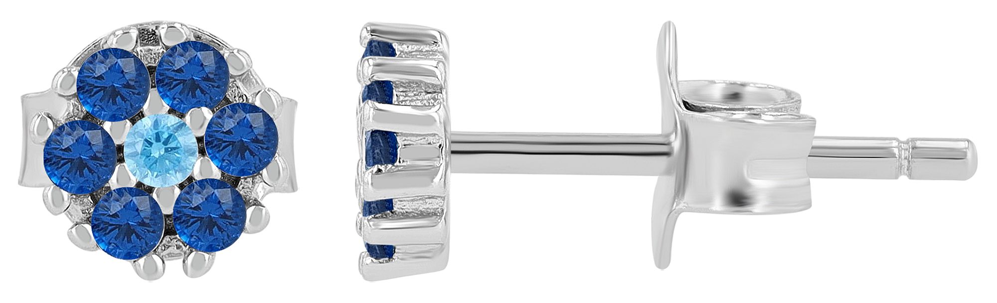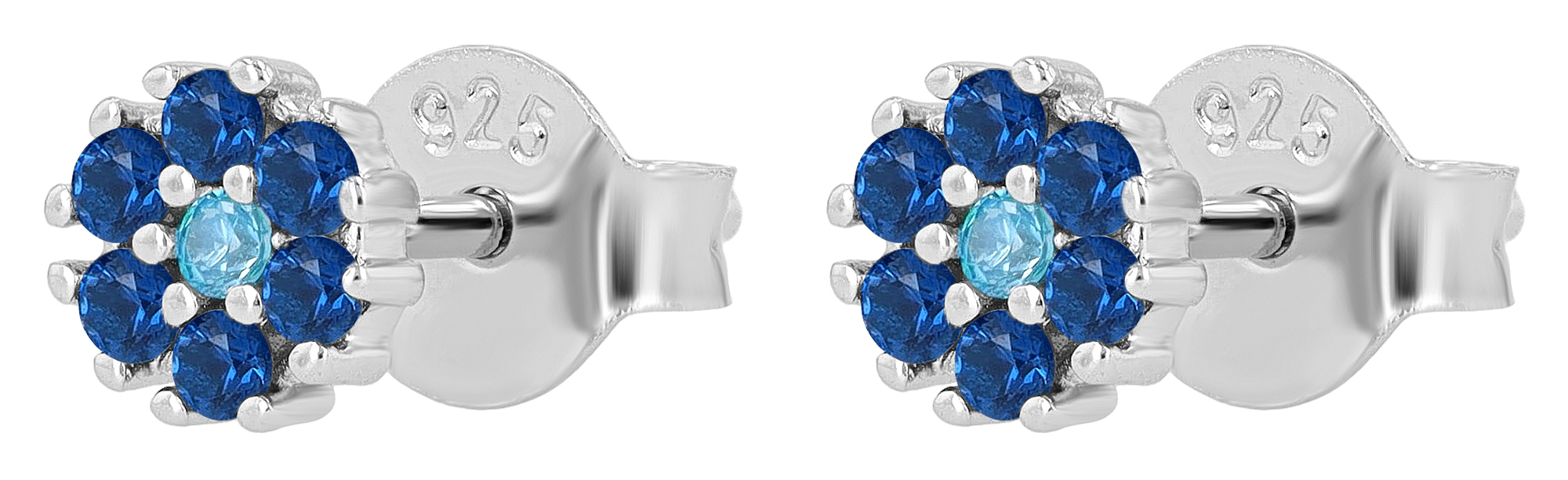 Productinformatie ""Sabi" 925/- Echt Silber Ohrstecker, Zirkonia blau, rhodiniert, Blume"